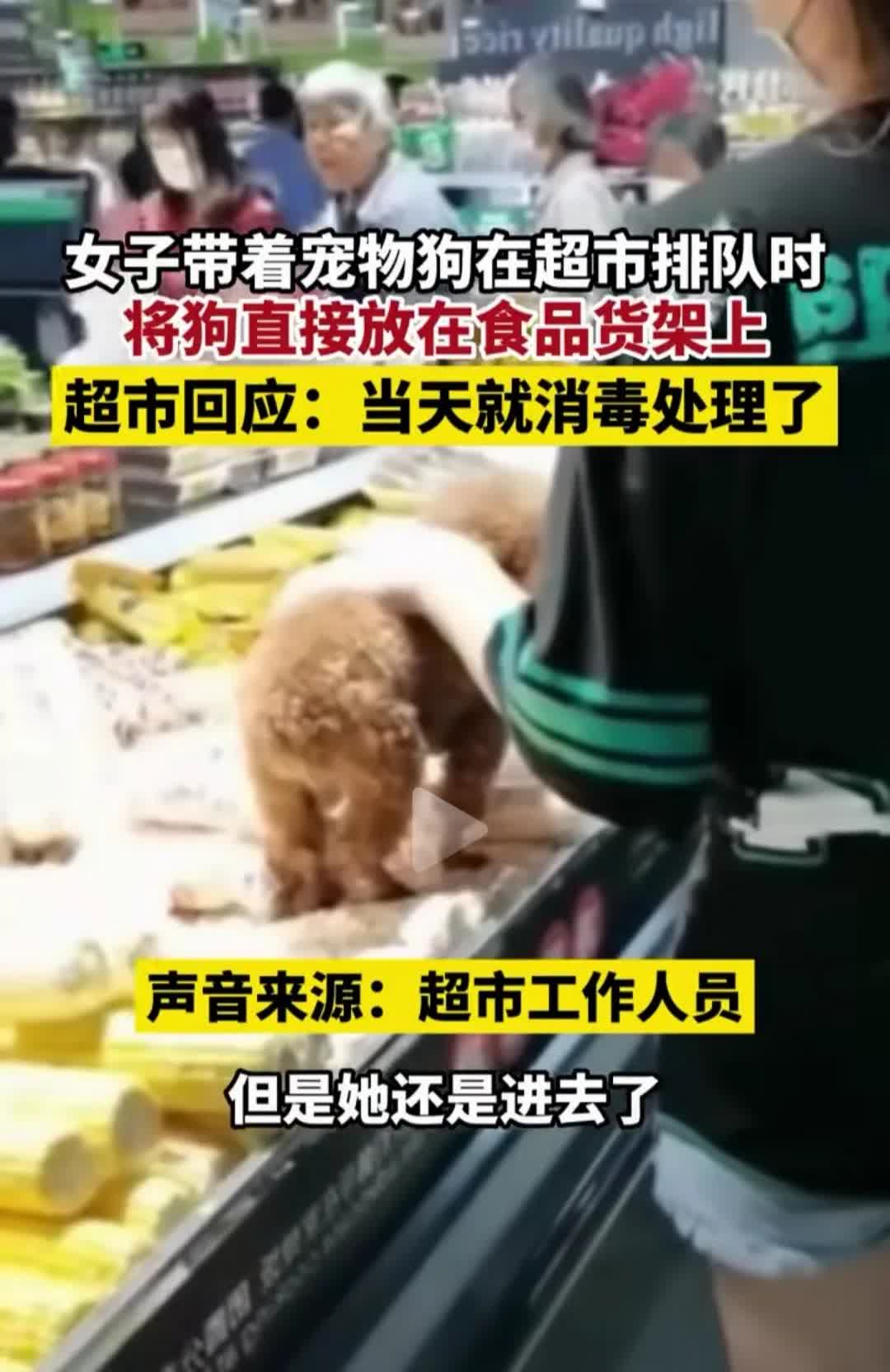 为什么不能带狗进超市?这就是原因。 一女子携带自己的宠物逛超市,在排队等待的过程中,她将自己的狗放在食物上。 整个过程被人拍到并发布到网络上引起了热议,大家都指责这女的不道德,自私。也有人质疑商场的不作为,允许他人携带宠物进商场。 所以说你永远不知道养宠物的人是个什么德性,给他带狗进去都不知会做出什么离奇的事。有放狗到食物上,下次就有把狗放到大米上拉屎。 这种情况下只能一刀切,我们的法律就有规定不能携带犬只进入公共场所,除了特殊情况外。可惜大部分人都不懂法,或者对法律不屑一顾。