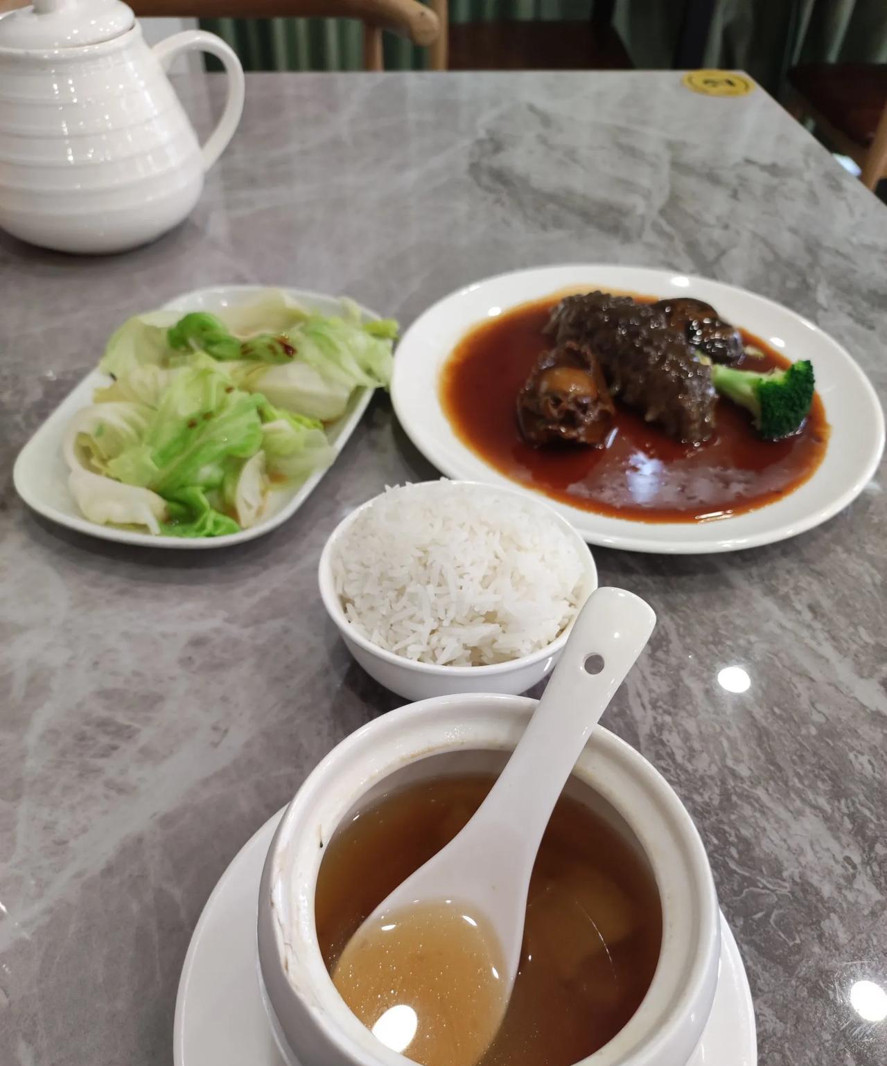 为看女排比赛熬了一夜,白天补了一天觉也还困乏,毕竟是年纪大了,熬夜很伤神。想到国足那些白条鸡们,营养那么好,还不是海参吃出来的?于是决定去一家新开的私房菜补补身体,你别说,味道还不错,价格也还实惠。 这里有十几块钱的猪脚饭,鱼腩饭,排骨饭,也有二十几块的炖汤蒸饭套餐,也有稍贵点的私房菜,丰俭由人,加上现在正在逐步恢复中的丰富多彩的夜生活,如此的东莞怎么能不叫人热爱,顺便说一句,东莞可不止有美食,你只有亲自抵达感受才能觉出它的好。