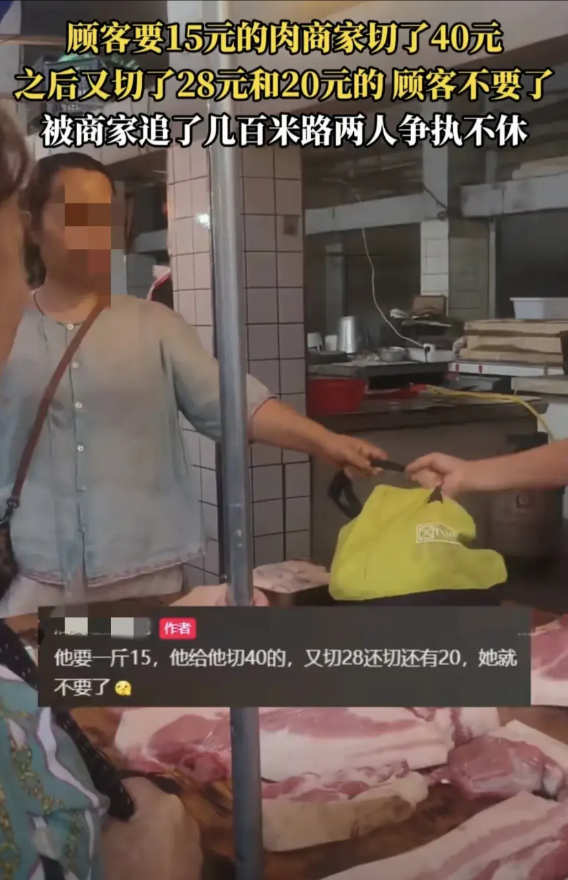 老板可能以为多点少点,顾客稀里糊涂的也就要了,这样还能多卖出去一点,可她没想到,女子就要15块钱的肉。