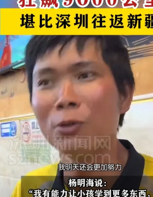 深圳单王一个月狂飙9000公里!近日,深圳一位被称为“单王”的外卖骑手杨明海的故事引发了全网热议。6月份,他累计配送距离近9000公里,相当于从深圳往返新疆,日均跑单300公里,几乎全年无休。就算路过家门口,他也不敢上楼看一眼孩子,怕耽误工作。杨明海说:“我有能力让小孩学到更多东西,就是我的成就感。”这份朴实的父爱和对家庭的担当,感动了无数网友。