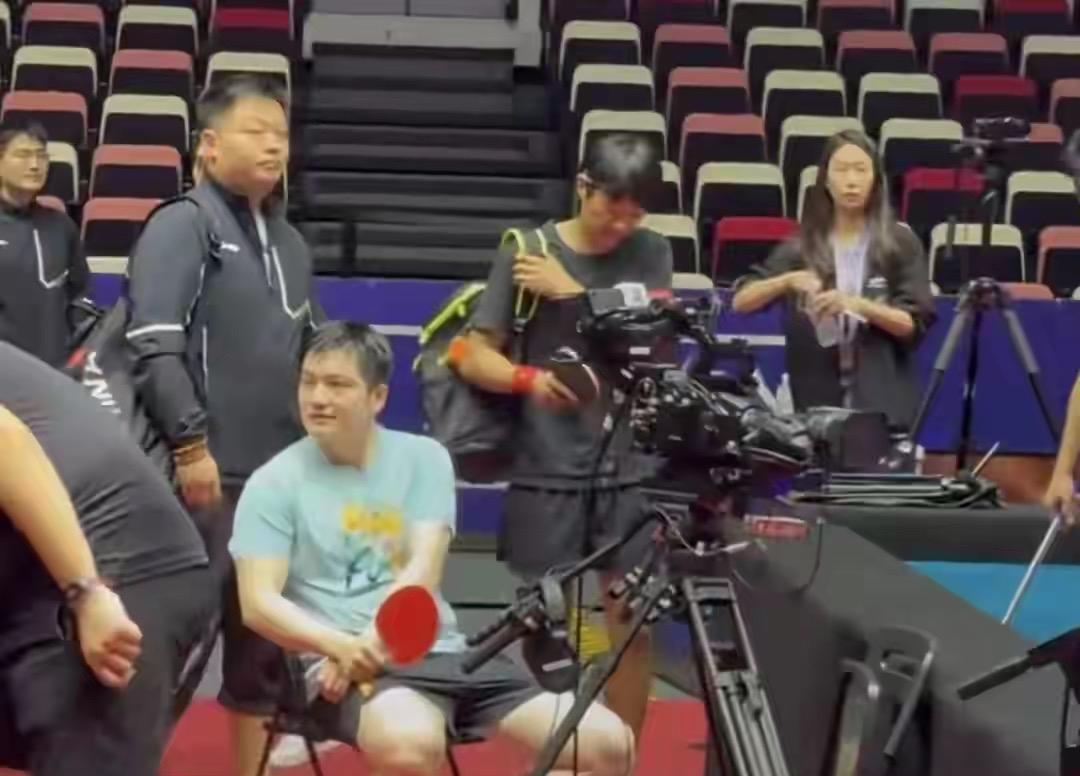 乒超联赛训练场,平野美宇看见崇拜者樊振东,马上过去打招呼,在见到樊振东又显得害羞