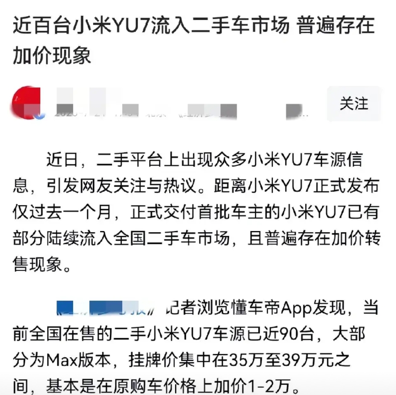 小米汽车的零公里二手车问题,确实应该整治一下了。我们单位有个同事想买个电车,一直盯着小米,但没抢到,只能去二手车市买,加价了两万买了一台零公里二手车!这是我认识的第二个买小米二手车还得加价的了。很多黄牛利用小米产能低于订单数量的问题,去抢订单,提车之后转手卖掉,之前有媒体曝光过,说小米的车,刚提车就进了二手车市场,然后被加价卖掉。我觉得小米应该加大审核力度,让真正的用户能直接买到车,现在这种情况,消费者多花钱了,工厂又没多赚,全被黄牛赚走了,不利于产业发展!另一方面也没必要坚持自己生产,别的电动车厂商大多都是贴牌生产,可以借鉴一下,只要做好品控就可以了。