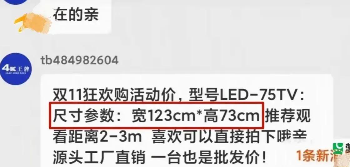 结果货一到,傻眼了,这电视缩水缩成了50寸,小得跟预期差了个十万八千里。调解员大哥一来,细查之下,真相大白:原来商家玩的文字游戏,“75”是型号不是尺寸。商家呢,倒是同意退货,可快递公司不给面子,大件拒收,还得签个免责协议,这一波操作,简直让人直呼“套路深”。 还有位网友,也是中了这招,维权之路,那叫一个坎坷。所以说啊,直播购物需谨慎,别被“75型号”迷了眼,不然电视没收到,先收了一肚子气。有网友跳出来说他们也踩过这坑:明明问了电视多大,店家说123×73厘米,结果到手一看,还是50寸的。一量才知道,75寸得是166×93厘米呢。店家倒好,一句“咱俩标准不一样”就想打发人,推卸责任玩得溜。这做派,可是踩了《消费者权益保护法》的红线了。