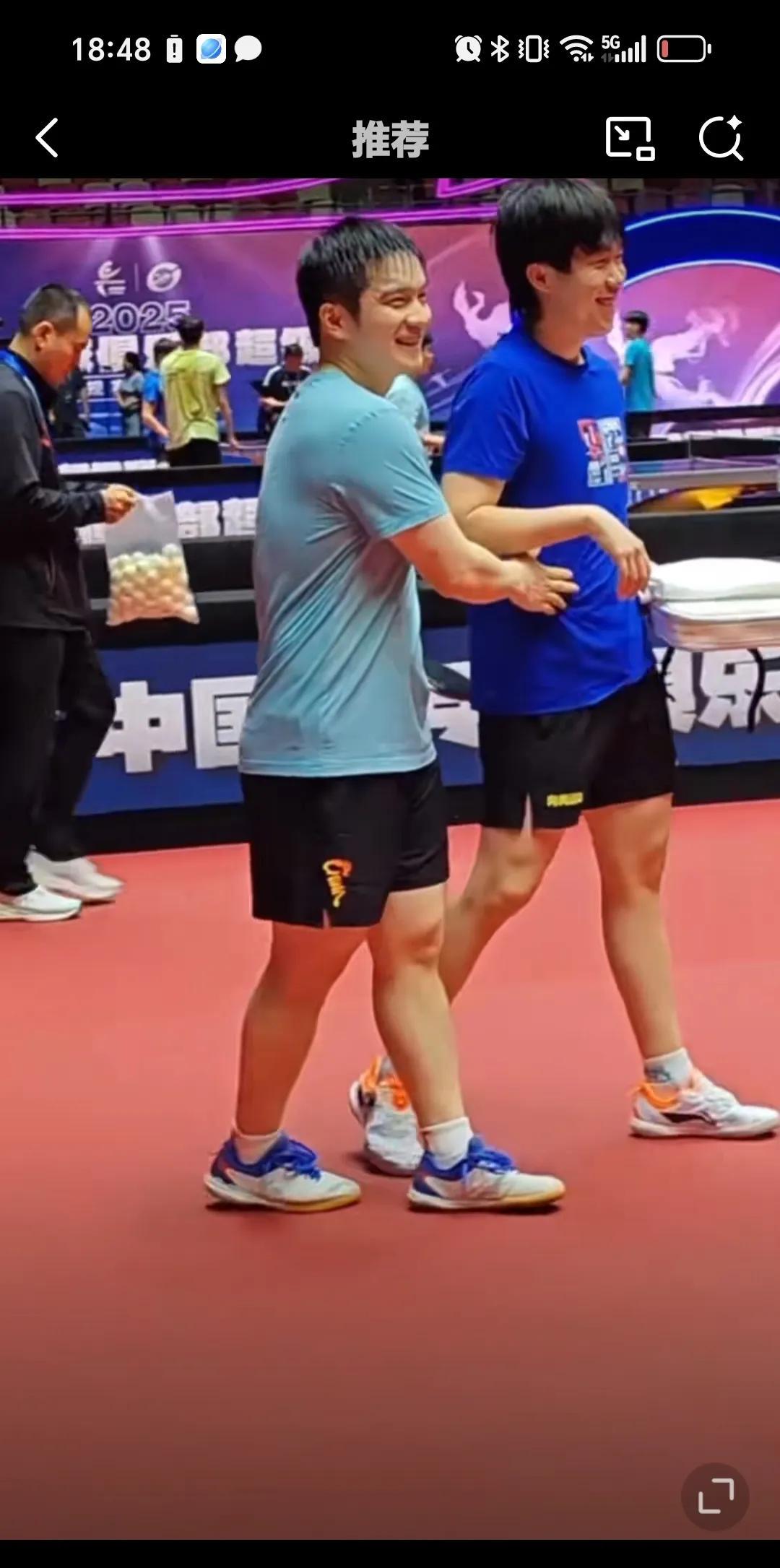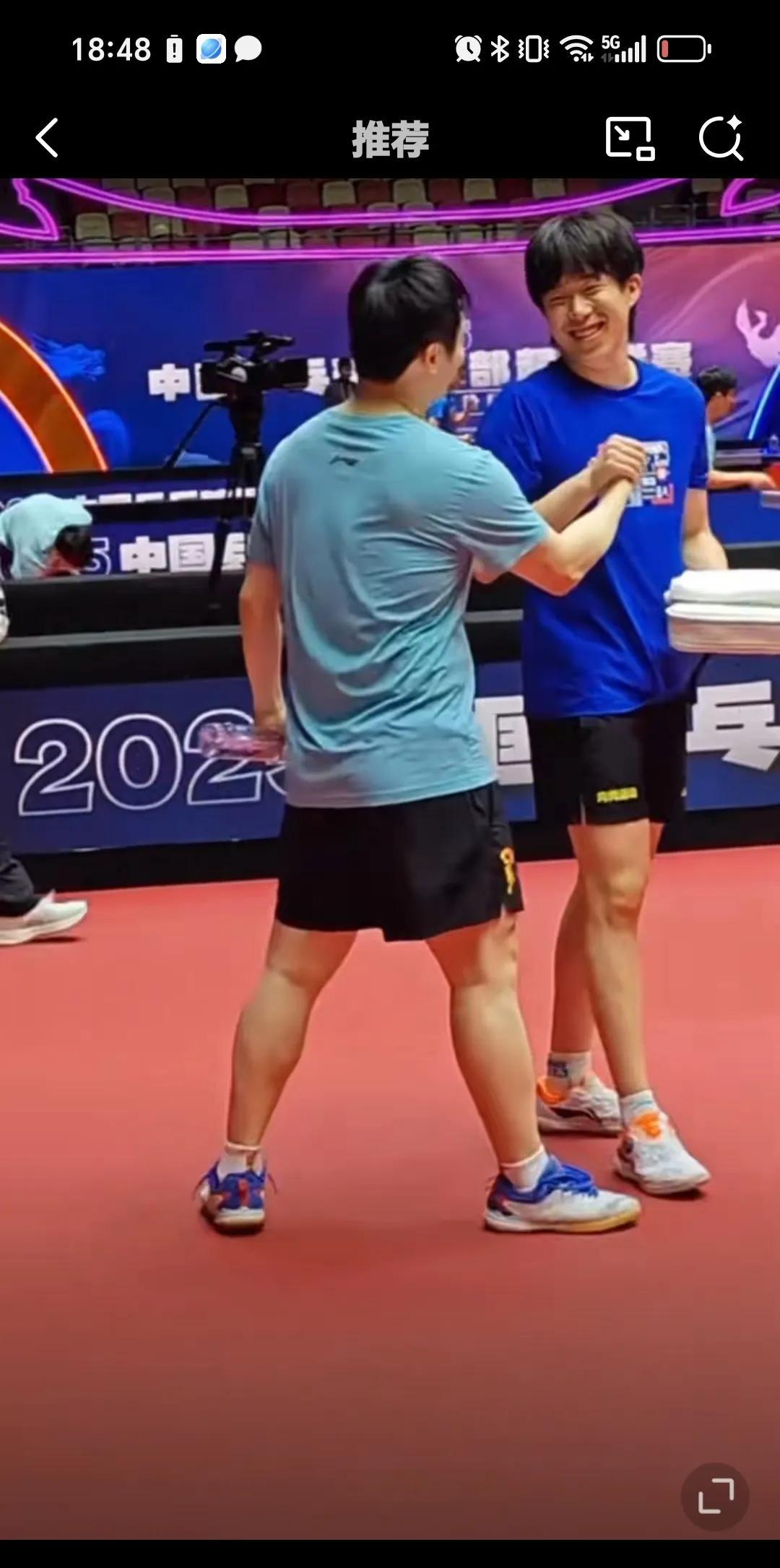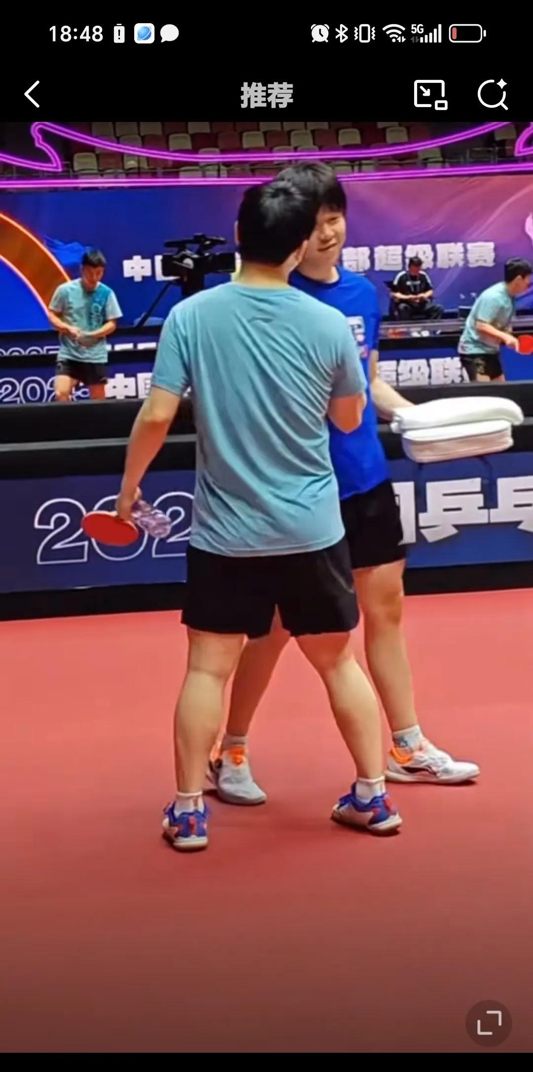 7月24日王楚钦和樊振东击掌热聊打招呼,说实话运动员直接感情很好,就是粉丝很多时