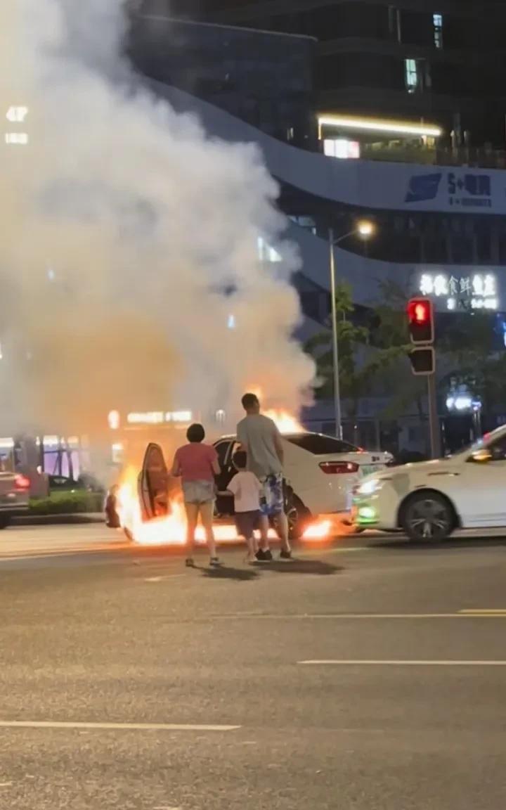 准备还打算买一辆新能源汽车的,看到这一幕,想想还是不买了! 四川成都中国铁建广场一辆电动汽车自燃,还伴随着“噼里啪啦”的爆炸声。 一家人着急忙慌地下了车,女子还在火堆中将自己的包找了回来,小孩子的脚好像被烫到了,一颠一颠地跳到爸爸身边。 一家三口眼睁睁地看着电车燃烧,可能很快就只剩一辆躯壳了吧! 新能源汽车虽然省钱,但夏天锂电池因为天气热很容易自燃着火,开新能源汽车的朋友们小心点吧!注意安全! #新能源自燃事故# #新能源电池自燃# #成都新能源自燃#