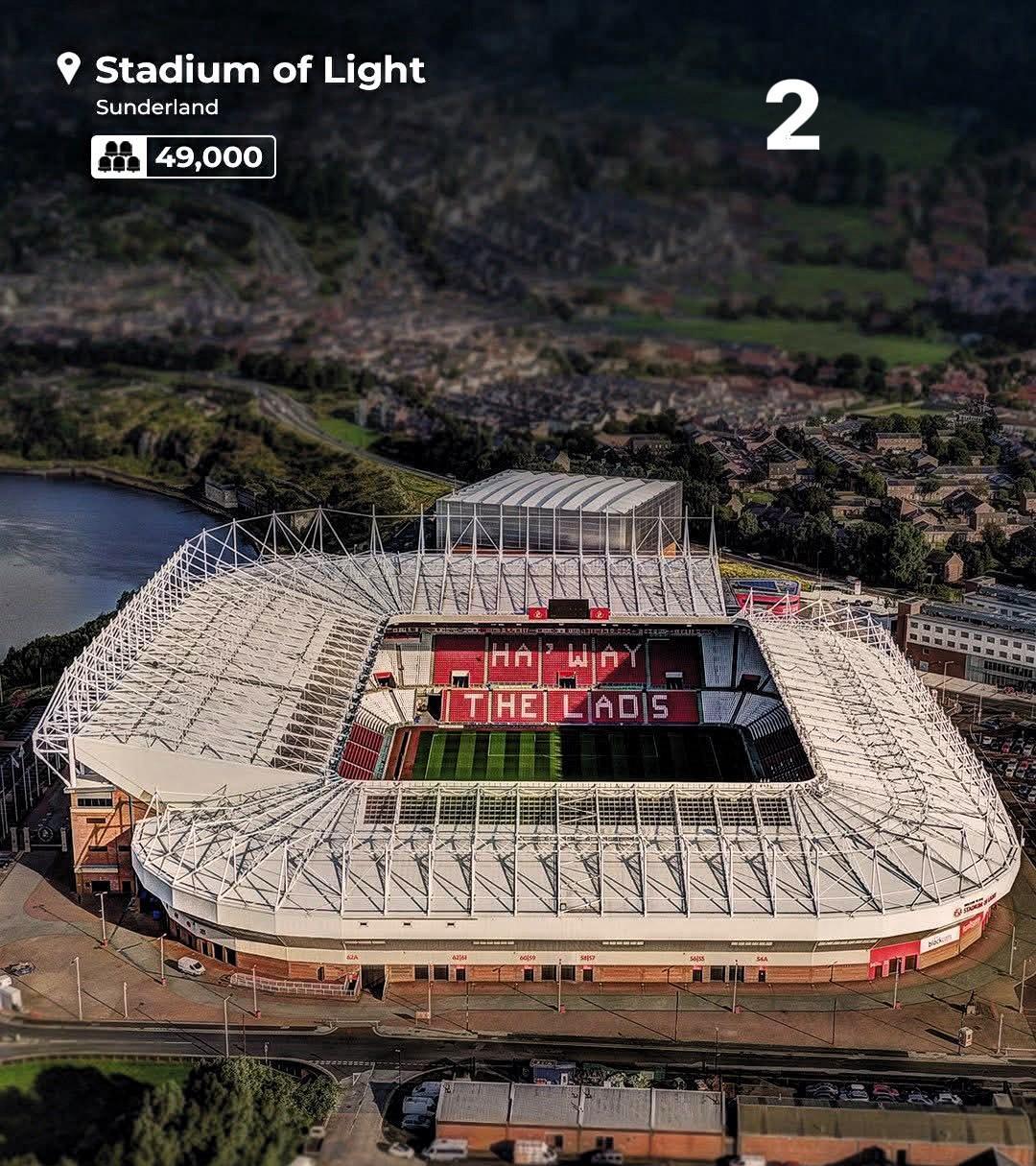 展示全球各大足球联赛十大最佳球场。 1/ 维拉公园、阿斯顿维拉 2/ 光明球场、桑德兰 3/ 圣詹姆斯公园球场、纽卡斯尔联队 4/ 希尔·迪金森球场、埃弗顿 5/ 伊蒂哈德球场、曼城 6/ 酋长球场、阿森纳 7/ 安菲尔德、利物浦 8/ 伦敦体育场、西汉姆联队 9/ 托特纳姆热刺体育场、托特纳姆热刺 10/老特拉福德、曼联