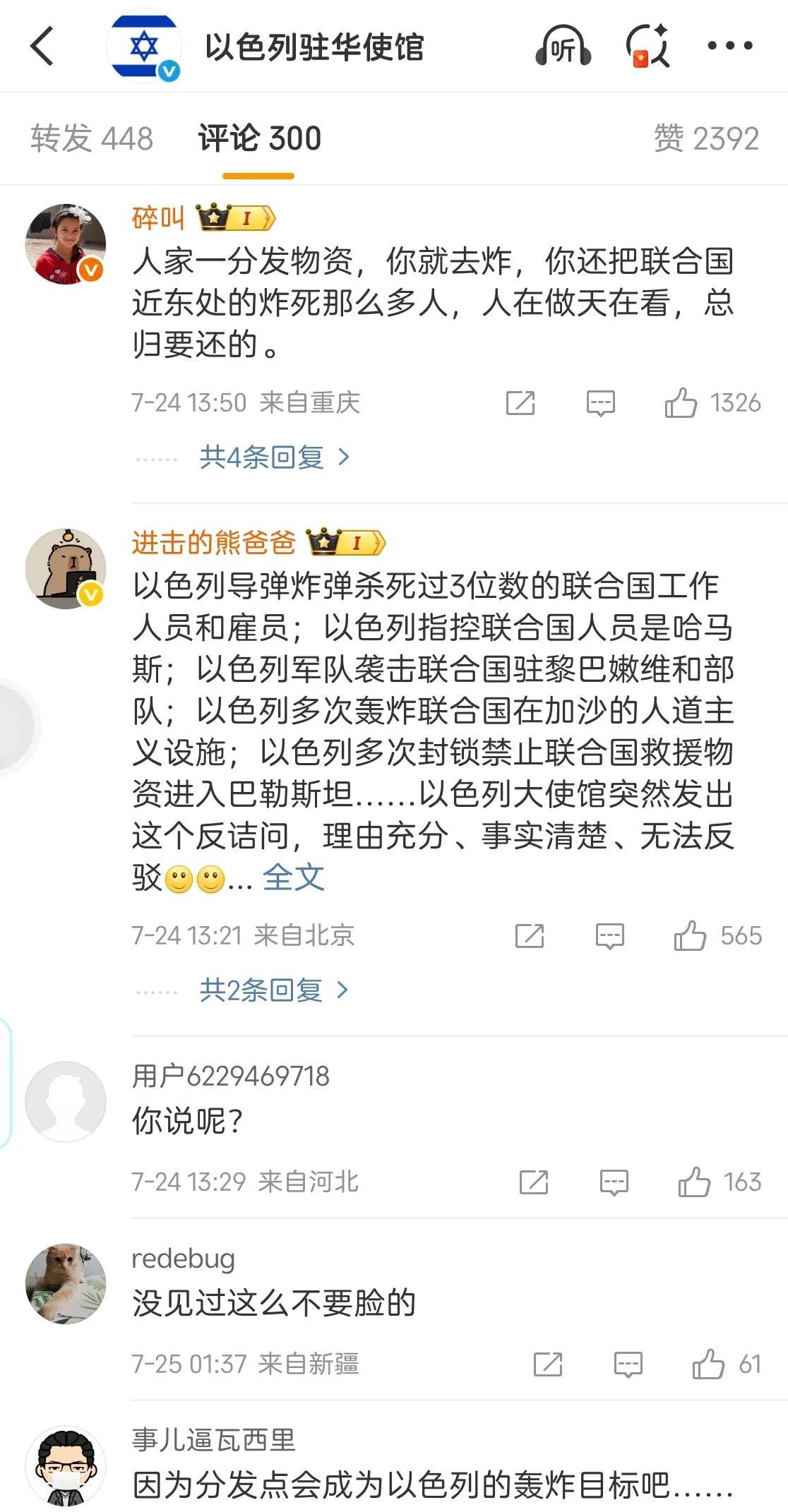 “950辆援助卡车在加沙等待联合国分发。为什么联合国不分发呢? 目前,950辆援助卡车满载着物资在加沙等候,随时准备分发。 以色列为这些卡车的进入提供了便利。 这么看起来好像是联合国的责任,以色列还给提供了“便利”,那联合国为啥不发呢? 评论区真相了: “人家一分发物资,你就去炸,你还把联合国近东处的炸死那么多人,人在做天在看,总归要还的。” “以色列导弹炸弹杀死过3位数的联合国工作人员和雇员及家人” 于是去查了一下,截至2025年7月,根据联合国官方及权威媒体的综合统计,自2023年10月7日巴以冲突全面升级以来,以色列军事行动已导致至少280名联合国工作人员在加沙地带丧生。 这一数字是联合国秘书长发言人确认的,包括近东救济工程处(UNRWA)、联合国项目事务署(UNOPS)等机构的国际及本地雇员。 只有你们以色列人最聪明,把中国网友当傻瓜吗? #以色列# #以色列杀害联合国工作人员#