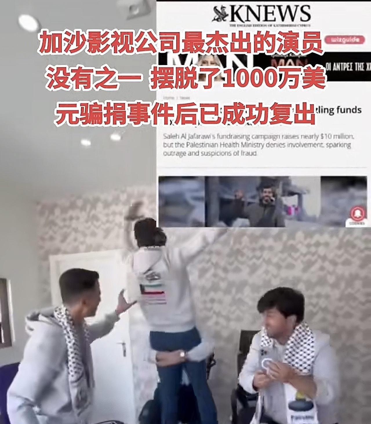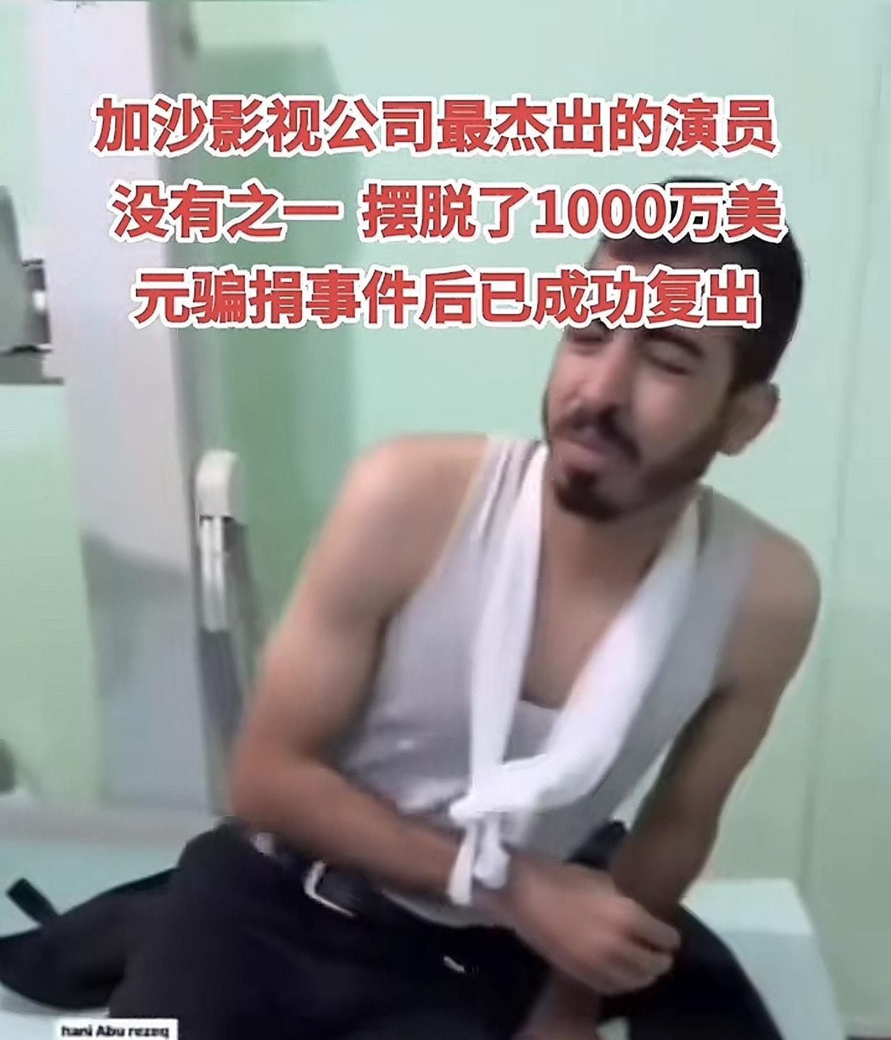“加沙影业”最不缺演员,甚至影帝! 他是人们最熟悉不过的老面孔,老演技,是加沙地区演技一流的杰出“头号明星”,如今摆脱1000万美元骗捐之后成功复出。 他扮过失去妻子的丈夫,扮演过被以军袭击重伤的平民,扮过失去几个孩子,撕心裂肺痛斥以色列的孩童父亲,扮过记者……除了扮演尸体时翻过车,其它四十多个角色都很卖力,很成功,也吸引了很多粉丝与泪水,奥斯卡小金人非他莫属!