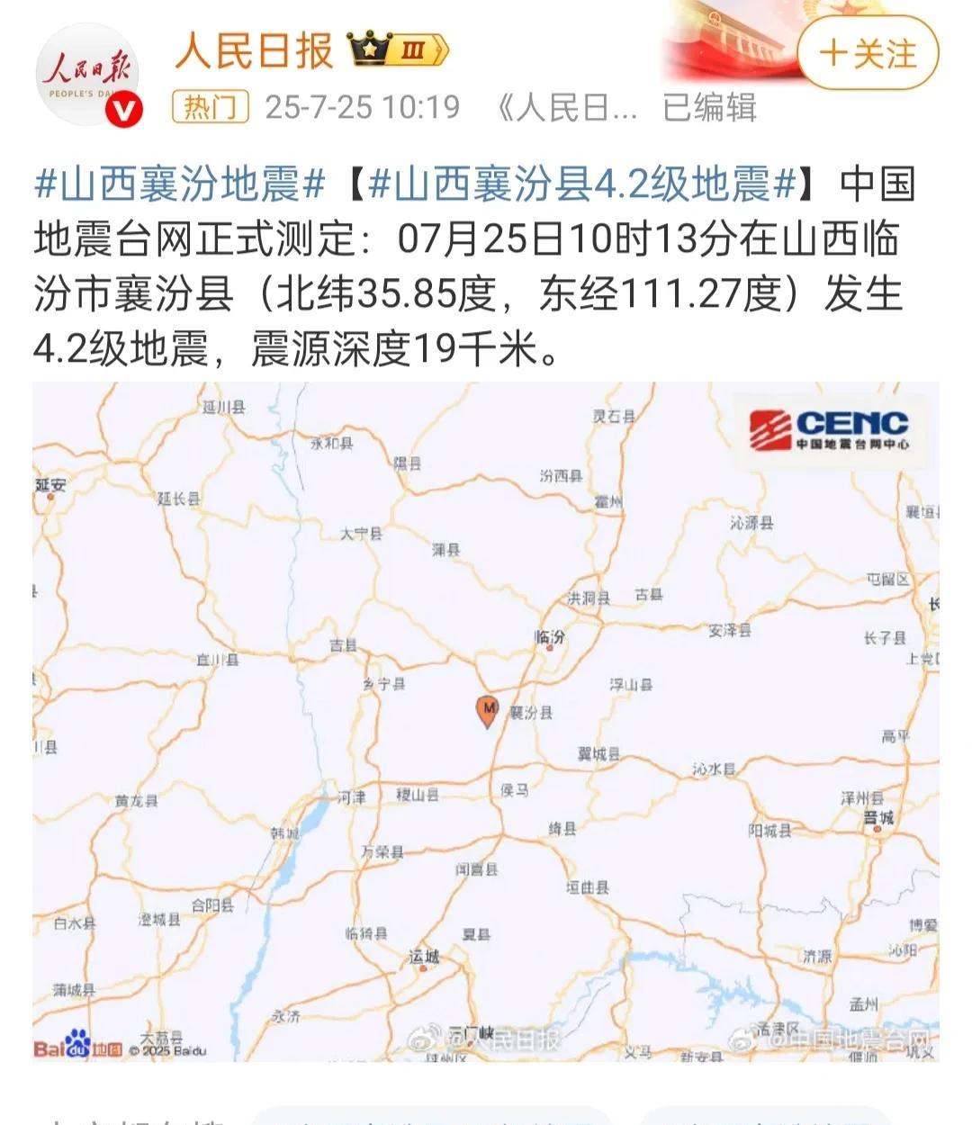 山西临汾又地震了,4.2级,今年第二次了,有明显的震感。我在山西临汾尧都区,年初那次就像过地龙,楼微晃。 今天这个就厉害了,感觉楼都摇摆了。 这是什么预兆啊,山西可不敢大地震啊,地下全是空的,这要是大地震,都不用救援,500年后,再来挖煤就可以了。#山西临汾又地震了#