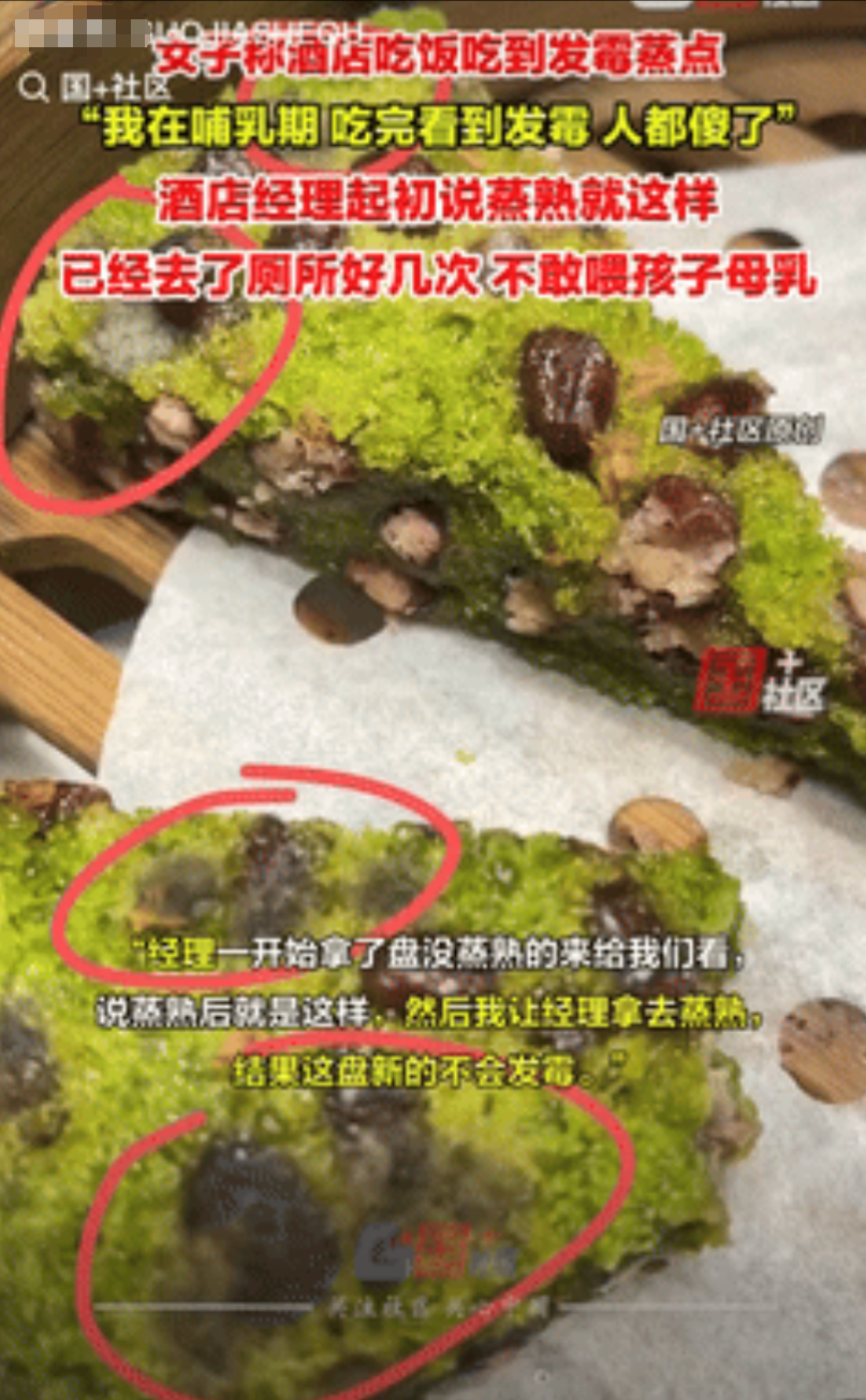 “遇到狠人了!”广东广州,一哺乳期女子和家人,在酒店吃饭时,吃到了发霉的蒸点,女