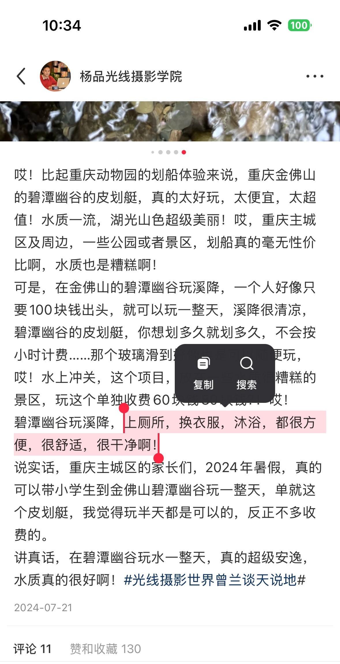 重庆南川玩水,哪里有干净的厕所呢?!这个,说真话,金佛山178环线,这么多玩水的地方,大多数都没有干净卫生的好厕所,尤其是那个三泉镇那个崖壁下面,那个肮脏到极致的厕所,简直了! 怎么讲呢?!其实,重庆金佛山178环线,玩水最舒服,最干净,最安全,停车最规范……还是天星小镇和金佛山西坡的这个碧潭幽谷溪降…… 尤其是对于有洁癖的人来说,讲真话,还真的只能是天星小镇和碧潭幽谷溪降…… 这周末,重庆主城区大太阳暴晒,下周,重庆可能会有41度高温来袭…… 讲真话,北碚,江津,万盛,綦江,南川,武隆,涪陵……玩水最好的地方,真的是天星小镇和碧潭幽谷溪降……而且也非常安全! 天星小镇,有大树遮阴,不会被太阳暴晒,有很多停车位……有高档酒店可以免费上厕所,而且入住的话,价格也不贵,比仙女山森林公园便宜太多了! 碧潭幽谷溪降和玩水,这个水质,真的没话说,而且还有水上乐园,类似于欢乐谷、融创文旅城、加勒比啥的一些设施,当然,设施是要简陋一些,但是,水质强太多了啊!自然野趣也是一流啊!关键是性价比其实更高啊! 噢,对了,说真话,如果是亲子游,如果是小学生和幼儿园的小孩子,说真话,金刀峡溪降和金山湖溪降都不太合适,真的不合适,还是碧潭幽谷的溪降和玩水,更有趣更欢乐也更安全。 #光线摄影世界曾兰谈天说地#