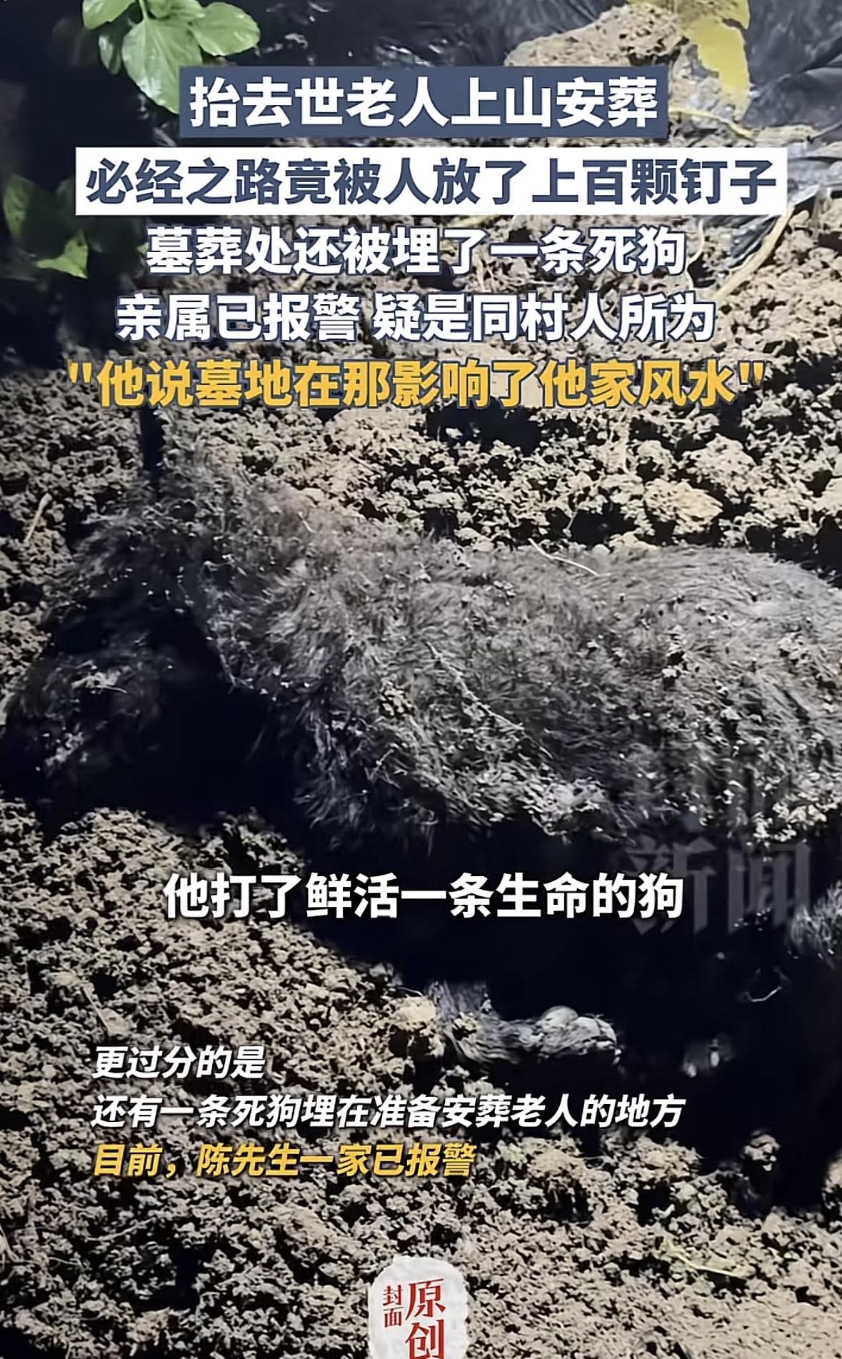 重庆,男子大伯去世,他们选了块墓 地,却遭到同村另一家人的反对,说墓 地在那太影响他家风 水,男子一家没搭理,按原计划抬大伯去山上安 葬,结果,必经之路上竟被人放了上百颗钉子,他们好不容易清除完,来到了墓葬地,可眼前画面却让所有人都倒吸一口凉气… 7月24号,封面新闻报道,陈先生的大伯刚刚离世,一家人正沉浸在悲痛之中,可后续安葬的事儿,却接二连三地冒出让人难以接受的状况。 按照计划,大伯的遗体要在24号凌晨5点多送回老家乡间山上安葬。 23号晚上 10 点左右,陈先生和20多个亲属就提前赶往墓地做准备工作。 他们想着早点到,把一切安排妥当,让大伯能安安静静地入土为安。 可谁能想到,当他们开车走在必经之路上时,噩梦开始了。 3、4公里长的路段,坡度还挺陡,车子开着开着,就听到“噗噗”几声,随行的5辆车轮胎全都被扎破了。 大家赶紧下车查看,这一看,气得肺都要炸了。 据他们统计,路面上起码被人埋下了上百颗钉子,这些钉子被钉在木板上,上面还盖着泥沙和杂草,分散在 20 多个地方。 这是谁干的啊?太缺德了!陈先生气得直跺脚,其他亲属也都义愤填膺。 可没办法,路还得走,安葬的事儿不能耽误。于是,20 多个亲属打着手电筒,弯着腰,一步一步仔细地清理钉子。 那夜里的风凉飕飕的,吹在身上让人直打哆嗦,可大家心里更冷,心里都是愤怒和无奈。 一队人整整花了 2 个小时,才把钉子全部清理干净。 本以为清理完钉子就没事儿了,可麻烦就像甩不掉的牛皮糖,又黏了上来。 当他们转道去往墓地的另一条必经之路时,发现一棵被砍倒的大树横在路中间,把路堵得严严实实。 “这还有完没完啊!”陈先生怒火中烧,脸都涨得通红。大家只好又齐心协力,把大树挪开,这才继续往墓地走去。 好不容易到了大伯的安葬地,大家刚松了一口气,可接下来的发现,让所有人都倒吸一口凉气… 在准备下葬的土堆里,竟然有一具狗的尸体。 这也太过分了!怎么能做出这种事儿!陈先生的母亲眼泪在眼眶里直打转,其他亲属也都气得破口大骂。 陈先生更是心里像堵了一块大石头,沉甸甸的。 那究竟是谁干的这些缺德事儿呢? 陈先生仔细想了想,觉得这些事儿很可能是同村人干的。 前两天,村里有人打电话来,说他们选的安葬地影响了他家风水。 当时陈先生就觉得莫名其妙,那可是他们自家的地,地势平整,位置也合适,离那家人的住处还有 1 公里多呢,怎么就影响他家风水了? 有人说,以前在我们农村,就有逝者下葬前一夜家属去整夜守坟的风俗,这主要就是防止有人搞破坏。 如今,这重庆老人下葬路上被人撒钉子,新坟埋了死 狗,毫无疑问,是被仇家故意所为,己涉嫌犯罪。一句话,报警吧,必对干坏事的人绳之以法! 目前,陈先生一家已经向警方报了案,他们就盼着警察能尽快调查清楚,还他们一个公道。 那么,从法律角度,怎么看待陈先生一家遇见的这一系列事? 《民法典》第1165条规定:行为人因过错侵害他人民事权益造成损害的,应当承担侵权责任。 在陈先生大伯的安葬路上埋设钉子、横倒大树、埋藏狗尸体等行为,明显具有主观恶意,旨在通过物理阻碍干扰正常安葬活动。 这些行为直接侵害了陈先生一家对遗体安葬的民事权益,符合“过错侵害”的构成要件。 如果经调查证实行为人为同村村民,如陈先生猜测的因风水问题产生矛盾者,则该村民需承担侵权责任。 即使行为人未直接实施全部行为,如仅埋钉子或埋狗,但如果存在共同故意或分工协作,可能构成共同侵权,需承担连带责任。 陈先生一家为清理钉子、挪树等额外支出费用,且因延误安葬时间承受精神痛苦,均属于可量化的损害后果。根据法条,行为人需赔偿财产损失及精神损害抚慰金。 如果行为人拒不赔偿,陈先生一家可依据《民法典》第1182条,也就是侵害人身权益的财产损失计算,来主张实际支出费用。 《殡葬管理条例》第14条规定:办理丧事活动,不得妨害公共秩序、危害公共安全,不得侵害他人的合法权益。 在公共道路埋钉、横树等行为,不仅直接阻碍陈先生一家通行,还对其他过往车辆和行人构成安全隐患,违反了“不得妨害公共秩序、危害公共安全”的规定,民政部门可对行为人处以警告、罚款。 陈先生一家在主张民事侵权赔偿的同时,可要求民政部门对行为人进行行政处罚,形成双重追责机制,增强对违法行为的震慑力。 如果埋钉、埋狗行为导致交通事故或人员伤亡,行为人可能涉嫌《刑法》第114条以危险方法危害公共安全罪,或第232条,即故意杀人罪,需承担刑事责任。 总的来说,陈先生一家除了报警,也可通过民事诉讼,以侵权为由起诉行为人,要求赔偿财产损失及精神损害。 对于陈先生一家的经历,你怎么看? 关注@运良说法 学习法律知识不迷路