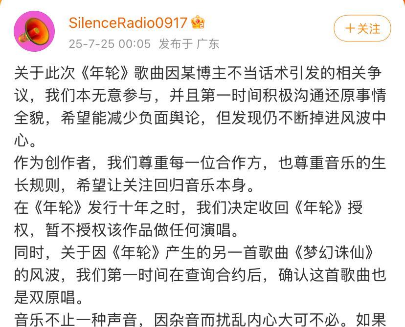 旺仔小乔一场演唱会把歌坛两大实力歌手推到了风口浪尖! 张碧晨汪苏泷抢《年轮》原唱,汪苏泷方前脚宣布收回《年轮》版权,并称双原唱,同时承认张碧晨是原唱之一。后脚张碧晨方发文,张碧晨是《年轮》唯一的原唱,否定双原唱。 汪苏泷作为《年轮》词曲创作者,而张碧晨先于汪苏泷在公共平台发布演唱。 到底谁才是原唱? 有网友表示两人争原唱,比作租客与房东争房子产权。 其实张碧晨方这个时候不出声就是对自己最大的维护,现在跳出来争原唱反而会让网友们感到反感,得不偿失。