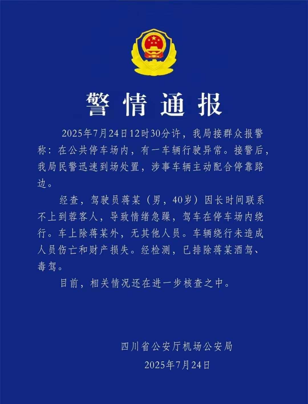 昨天,在成都机场停车场发生了一件匪夷所思的事情。 据警情通报披露:一位来机场接客