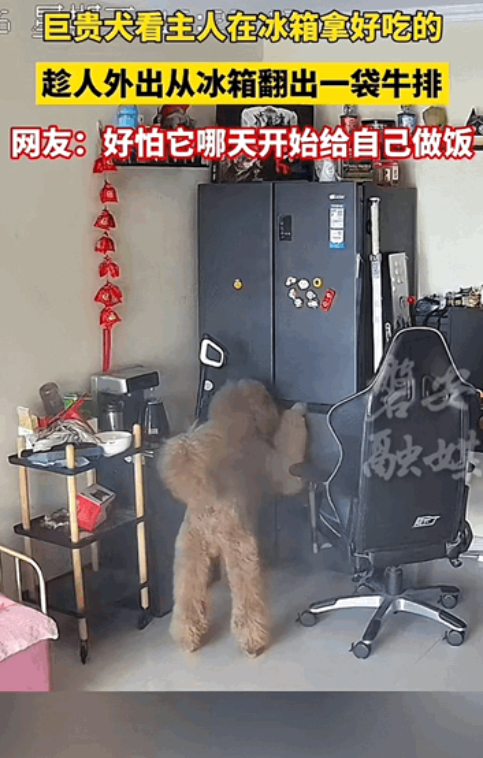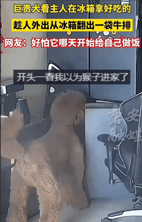 成精了!河北,狗狗经常看主人从冰箱里拿好吃的,趁家中没人的时候偷偷打开冰箱,竟然翻出来了一袋牛排,翻出牛排后它兴高采烈的,幸好没有生吃掉,还算它不傻!网友:好怕它哪天开始给自己做饭! 故事得从狗狗的 “日常观察” 说起,平日里,主人经常从冰箱拿好吃的,狗狗就蹲在一旁,眼睛直勾勾盯着,把 “冰箱里有美食” 这事儿,牢牢记在了小脑袋里。 终于,等到家中没人的时候,这只 “小机灵鬼” 开始行动了。它围着冰箱打转,研究起怎么打开冰箱门。也不知道是观察主人次数多,掌握了 “开门技巧” ,还是误打误撞,居然真让它把冰箱门扒拉开了。 冰箱门一打开,狗狗立马开启 “寻宝模式” ,小鼻子这儿嗅嗅、那儿闻闻,很快锁定目标,一袋牛排。 它用爪子扒拉、用嘴叼,费了好一番功夫,把牛排从冰箱里 “翻” 了出来。成功拿到牛排的狗狗,兴高采烈地在客厅里打转,那小模样,仿佛在炫耀:“看!我找到宝贝啦!” 不过,让人庆幸的是,狗狗没直接生吃掉牛排,算是给主人 “留了面子” 。 等主人回家,查看监控时,才发现狗狗这一系列 “成精” 操作,又好气又好笑,赶紧把这段有趣的画面分享到网上。视频一出,网友们瞬间被逗乐。 有人留言:“好怕它哪天开始给自己做饭!这智商,指不定真能干出来!” 还有人分享自家宠物的 “聪明事迹” :“我家猫会开抽屉偷罐头,和这狗有得一拼!” 评论区里,满是对狗狗 “聪明劲儿” 的调侃,以及对 “宠物成精日常” 的共鸣,现在的宠物,仿佛越来越懂 “人类生活” ,时不时就给主人整出点 “惊喜” 。 其实,狗狗会做出这样的行为,和它日常观察主人、对美食的渴望分不开。 宠物们虽然不会说话,但它们会默默观察主人的举动,模仿学习,再加上对食物的天然执着,就上演了这出 “偷翻冰箱找牛排” 的戏码。这看似 “成精” 的背后,藏着宠物对主人生活的 “沉浸式参与” ,也藏着它们单纯又可爱的小心思。 那么你们怎么看待这件事呢?欢迎在评论区说说你们的看法吧! 信息来源:(磐安融媒)