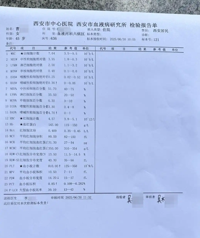 “严查到底!”7月8日,陕西西安,女子生病住院,被检查出患有骨髓增殖性肿瘤,基本