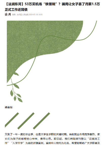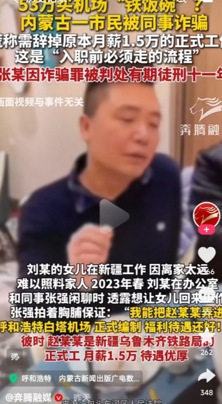 这位母亲肠子都悔青了! 闺女原先在新疆乌鲁木齐铁路局工作,正式工一个月工资有1.5万元,福利待遇还好,唯一缺点就是离家远,难以照料家人。 包头市的刘丽的女儿赵丹丹原本在新疆乌鲁木齐铁路局有着一份不错的正式工作,月薪1.5万,待遇优厚。 可刘丽总觉得女儿离家太远,照顾不上家里,一心想给她在本地找份稳定的工作。 2023年春天,她在办公室和同事张强闲聊时,透露出这个想法。 让她没想到的是,张强拍着胸脯说自己有门路,能把赵丹丹弄进呼和浩特白塔机场当正式工,还是带编制的,福利待遇都好。 这话正好说到了刘丽的心坎里,尽管女儿原本的工作已经很不错,但“离家近”和“正式编制”的诱惑还是让她动了心。 接下来的日子里,张强一步步给她设下圈套,先是催着赵丹丹赶紧辞掉新疆的工作,说这样社保才能顺利转移。 接着又要走了户口页、学历证明、无犯罪记录证明,连证件照都指定了照相馆拍摄邮寄,到了2024年2月,他又要去了赵丹丹的体检报告,说是入职前必须走的流程。 看着张强说得有鼻子有眼,流程走得像模像样,刘丽彻底放下了戒心。 2023年12月,张强打来电话,说办这份工作需要55万打点,看在同事的面子上,53万就行。 为了女儿的“铁饭碗”,刘丽东拼西凑才凑齐了这53万,立马转给了张强。 可她不知道,这笔钱当天就被张强转走了52.5万,全用来偿还他自己的外债。 2024年春节过后,赵丹丹的工作一点动静都没有,刘丽天天催问,张强从“正在办理”到“等机场通知”,最后干脆不接电话了。 直到3月,刘丽发现女儿的机场入职体检报告还躺在邮箱里没被查看,才猛然惊觉被骗了。 更让她追悔莫及的是,女儿原本待遇优厚的工作没了,还背上了一屁股债,只能在家待业。 后来法院审理时,张强辩称这笔钱是“借款”,却拿不出借条,他的辩护人还质疑是刘丽报复,但11名证人的证词和清晰的转账记录摆在面前,谎言不攻自破。 最终,张强因诈骗罪被判处有期徒刑11年,并处罚金11万元,同时被责令退赔违法所得。 可判决生效时,那53万血汗钱早就成了张强偿还债务的“买单款”,赵丹丹的工作依旧没着落。 张强之所以能得逞,说到底还是抓住了一些人想走捷径的心理。 法官和警方都多次提醒,正规单位的招聘有着严格的流程和标准,像机场、铁路、国企等系统,绝不会通过私下收费、托关系等非正规途径录用人员。 甘肃政法大学法学院副教授白海娟也建议,求职者要树立正确的就业观念,不要盲目追求“编制”,要综合考虑工作内容和自身职业规划,在求职过程中增强防诈防骗意识,不轻信“高薪”等招聘信息,不随意泄露个人信息,不轻易支付相关费用。 求职者和家长们与其寄希望于“托关系”“买编制”,不如脚踏实地提升自身能力,通过正规渠道去争取机会。 毕竟,天上不会掉馅饼,一味贪图所谓的“捷径”,到头来很可能像刘丽母女一样,不仅没得到想要的,还会失去原本拥有的,得不偿失。 信息来源:澎湃新闻 2025-07-18 53万买机场“铁饭碗”?骗局让女子丢了月薪1.5万正式工作还背债
