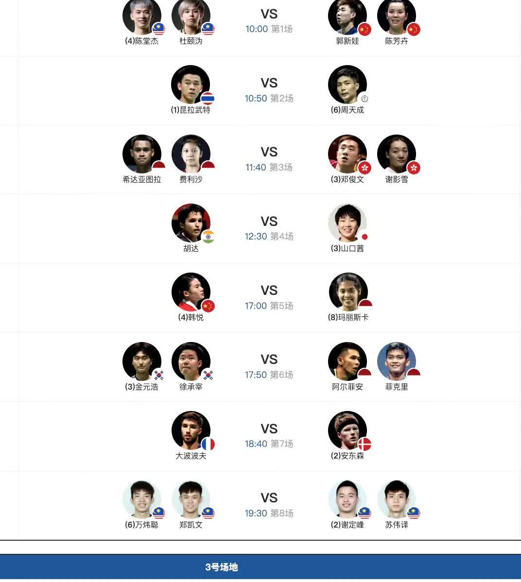 明日(7月25日,周五)赛程来了! 2025年中国羽毛球公开赛明日各单项都开打