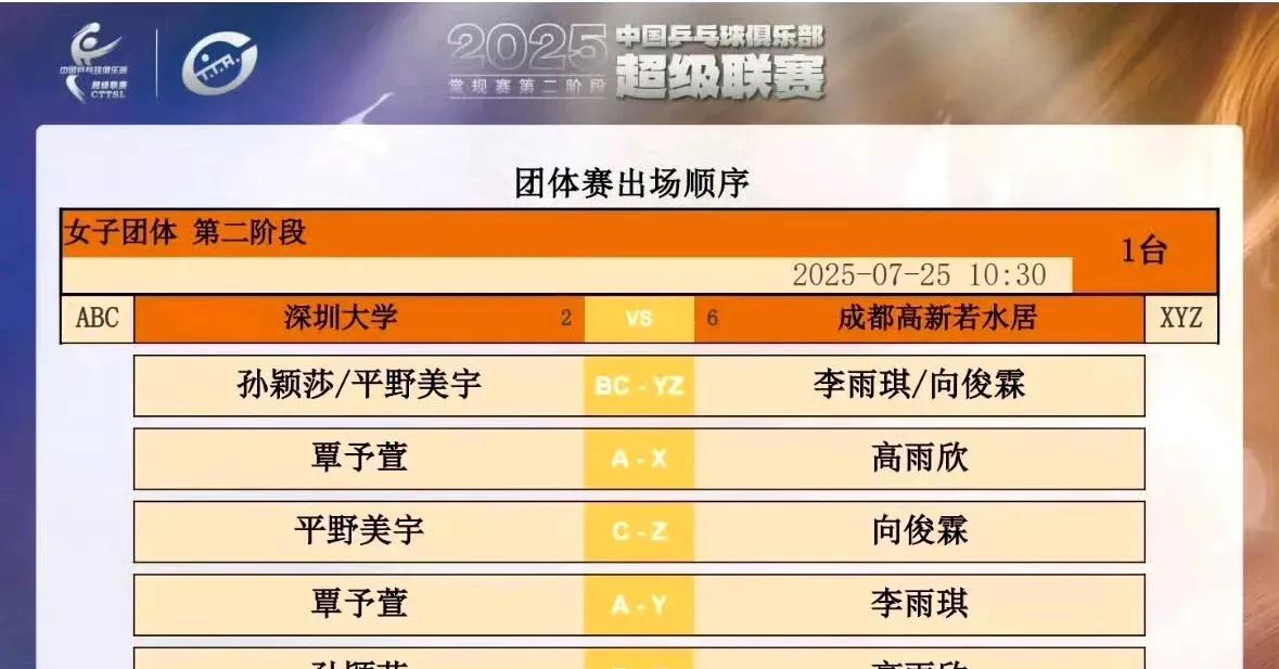 首场和莎莎配女双!平野美宇:这个班我贴钱都乐意上!乒超联赛第一场,中日国乒站在球