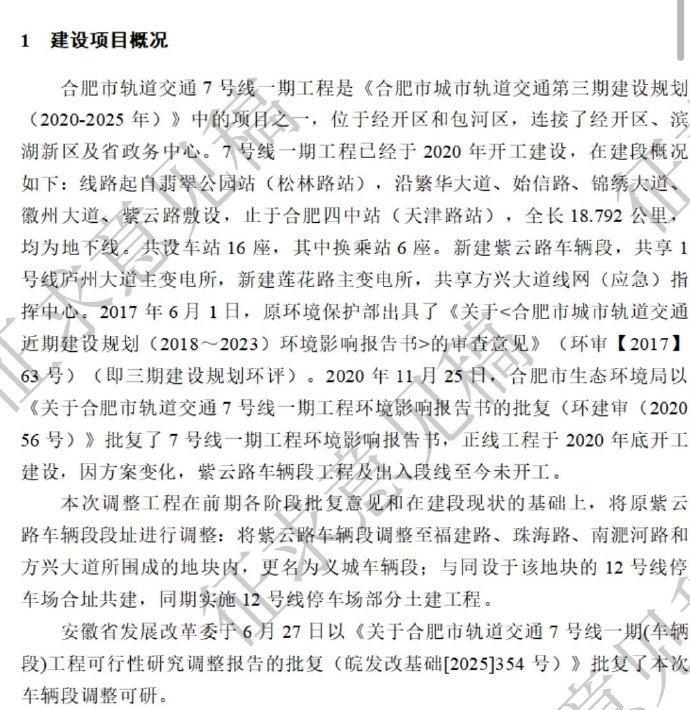 合肥轨道交通7号线一期/12号线义城车辆段环评征求意见稿发布。2020年开工建设的,计划2027年12月26日运营通车,也就是建设周期为7年。主要是之前车辆段选址的问题,被投诉了。 另外12号线,还没批复。