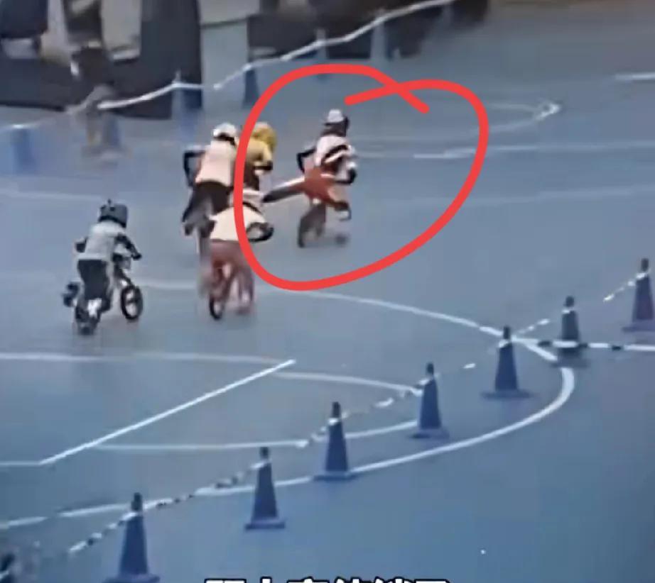 这里支持爸爸的做法。 原本是孩子们的一场比赛,结果穿红衣服的孩子故意伸腿去踹左边