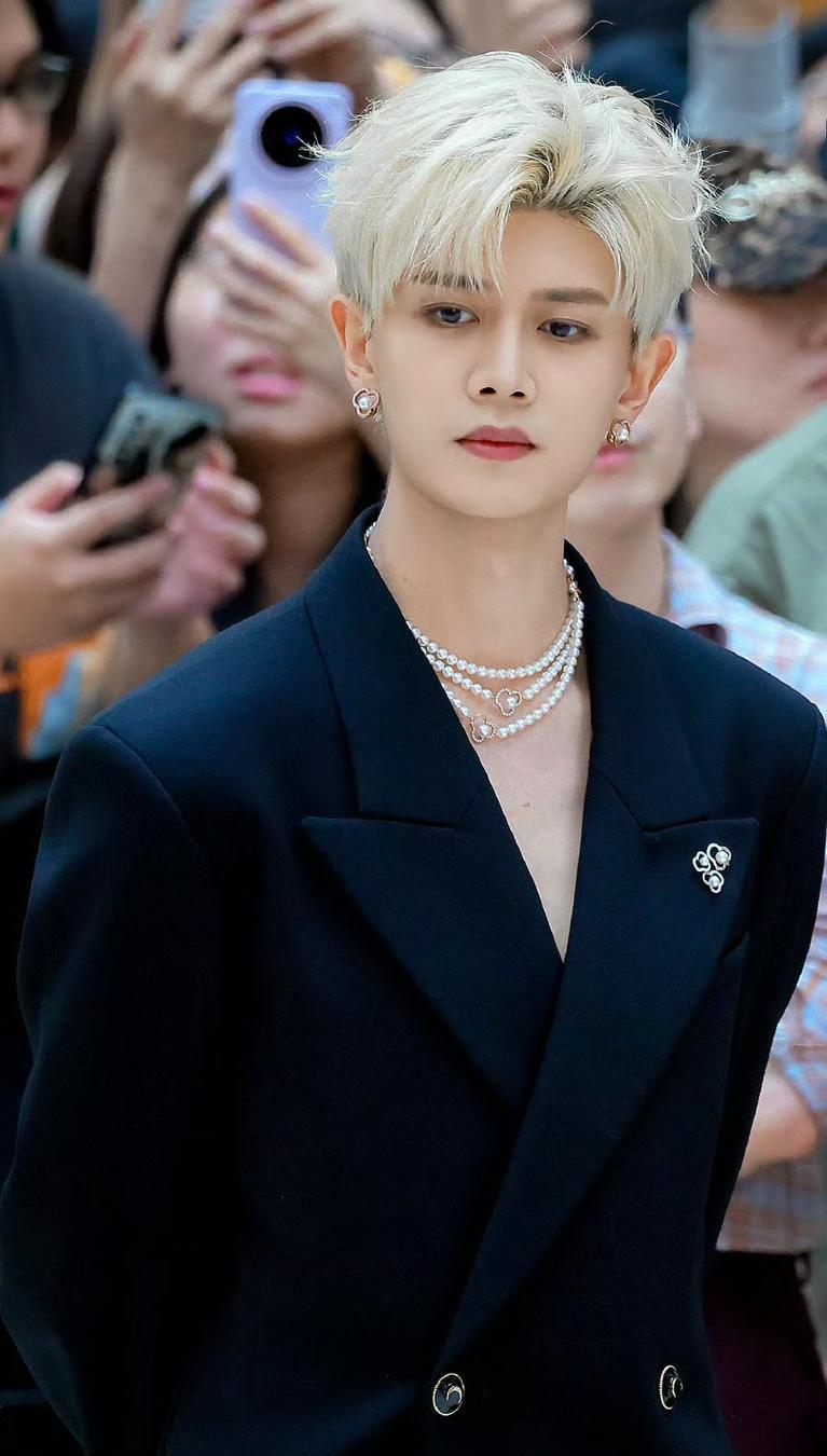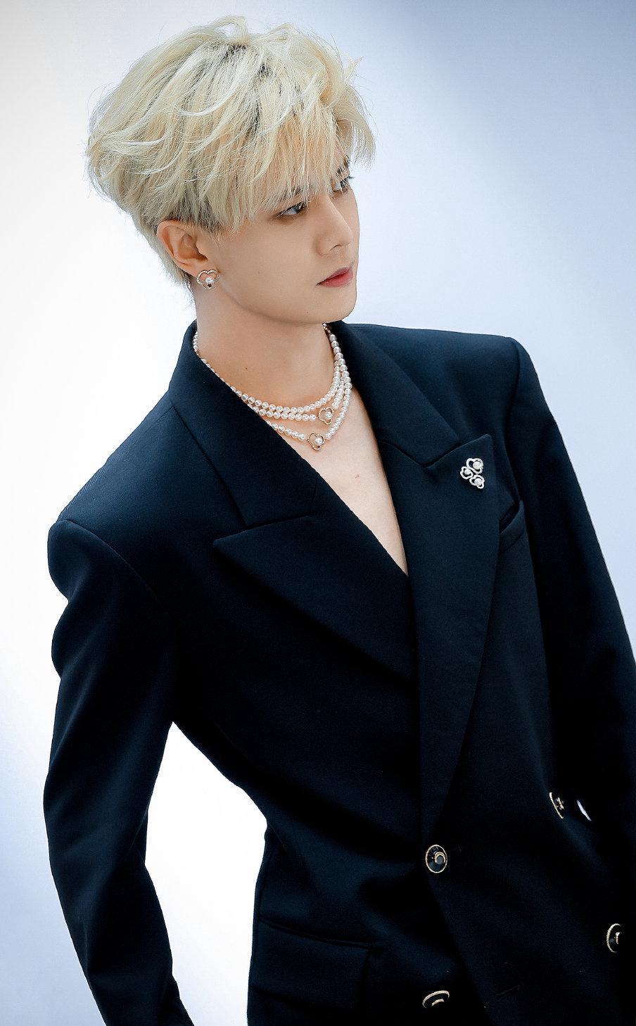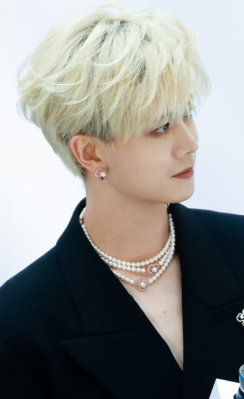 任嘉伦这造型也太绝了!金发的耀眼灵动碰撞温润珍珠,自带矜贵气场;再配上利落深V黑