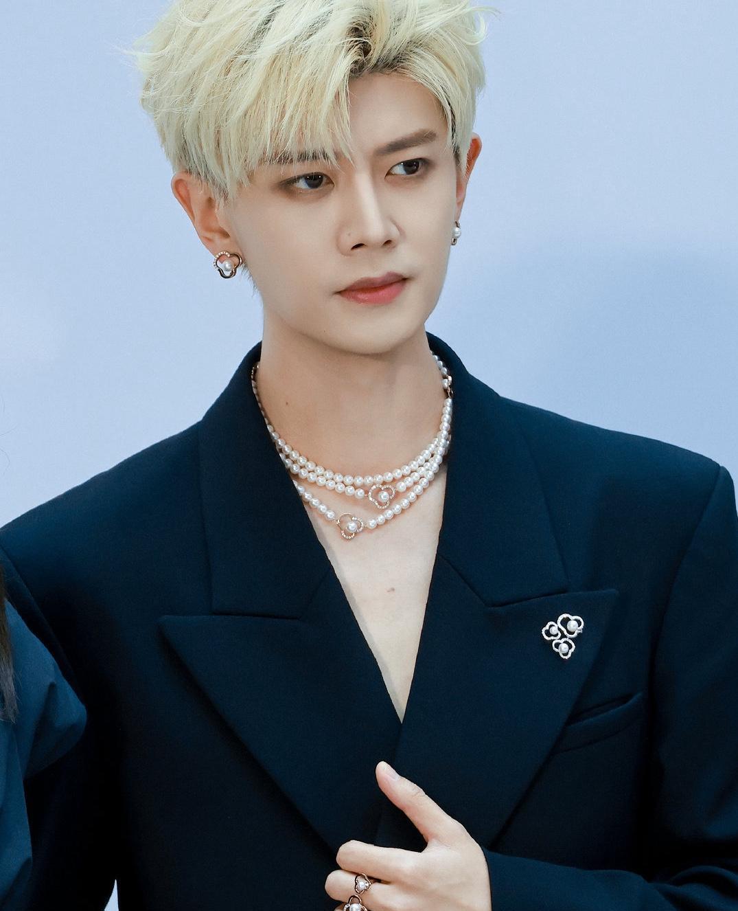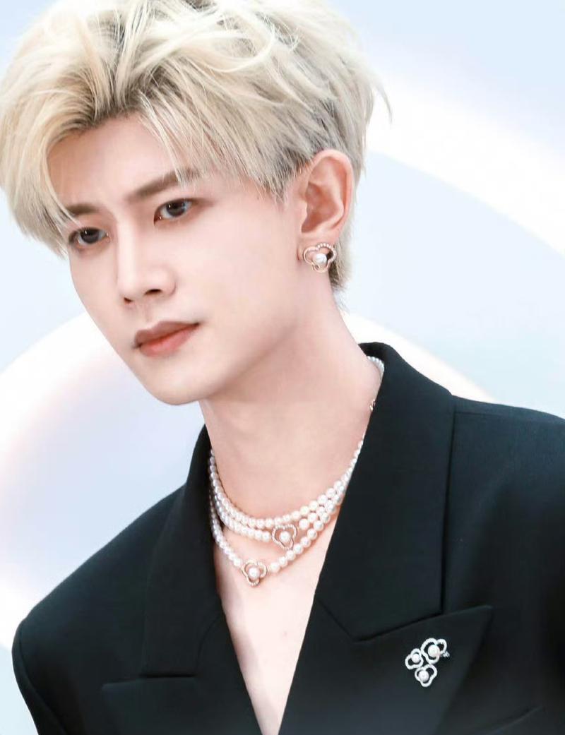 任嘉伦这造型也太绝了!金发的耀眼灵动碰撞温润珍珠,自带矜贵气场;再配上利落深V黑西装,线条感十足,简直是从豪门小说里走出来的贵公子本人,优雅又带点致命吸引力~