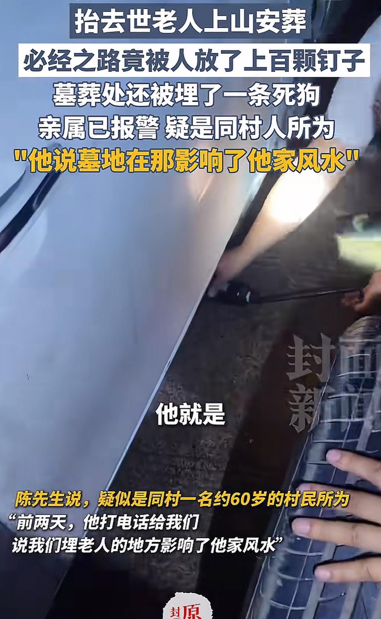此事情曝光之后,引发众多网友热议。有网友当即表示,“放心吧,这种人得不到老人做的,天不会饶他,我村有一个坟霸,六十多岁去年死了,最后都看不到地基埋,都没人帮忙送上山!” 还有网友感慨道,“我爸走了出殡的时候也是,那天刮台风下大暴雨,我们同村同姓的一户人也是拦路,不让我们从他们家旁边的路经过,后来被逼着走发洪水的河里过去,我到现在都记着他们家这个大仇!” 周少想说这事看得人心里发堵。逝者为大,入土为安是最基本的尊重,同村人却用撒钉子、埋死狗这种阴损招数阻挠,就为所谓的“风水”,实在突破做人底线,太小心眼了。 乡村邻里本应守望相助,却因封建迷信结下怨怼,甚至牵扯到逝者,既寒了生者的心,也坏了村风。更何况,人死为大,这是老祖宗传下来的规矩,再怎么有矛盾,也不能在这种时候使绊子。 网友说的那些拦路、为难办丧事的事,听着就气人,抬头不见低头见的,把事做这么绝,以后咋相处?一时的意气用事,可能结下几代人的隔阂。 对于抬去世老人上山安葬路被人放钉子这事,大家怎么看呢?#长沙新朋友# #寻美三湘#