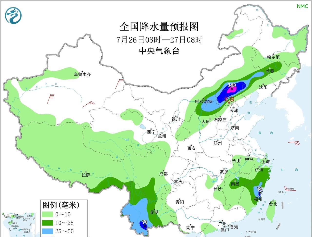特大暴雨袭击京津冀大部地区降水破记录! 截至今天17时,河北-内蒙古山西一带由