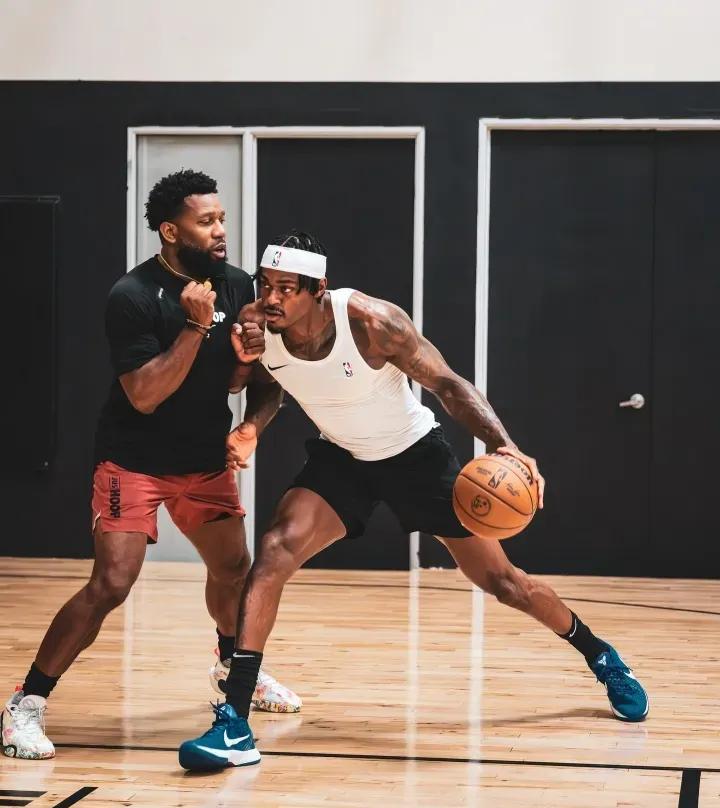 克内克特整个夏天一直练持球进攻, 范德彪也是一直在练持球进攻。 反而都忽略了湖人最缺的三分, 夏季联赛克内克特持球打不进, 三分远射绝技也消失了, 硬生生把首轮的身价打成了落选秀行情, 还不如55秀太子布朗尼发挥好。 至于范德彪上赛季基本被弃用, 主要原因就是没有一点进攻威胁, 上场杀敌800自损1000, 休赛期竟然在疯狂练持球和肌肉, 湖人咋能轮到你来持球, 投进接到老詹的甩锅球, 才是最重要急需提高的。 附网图看看范德彪的劲爆状态。