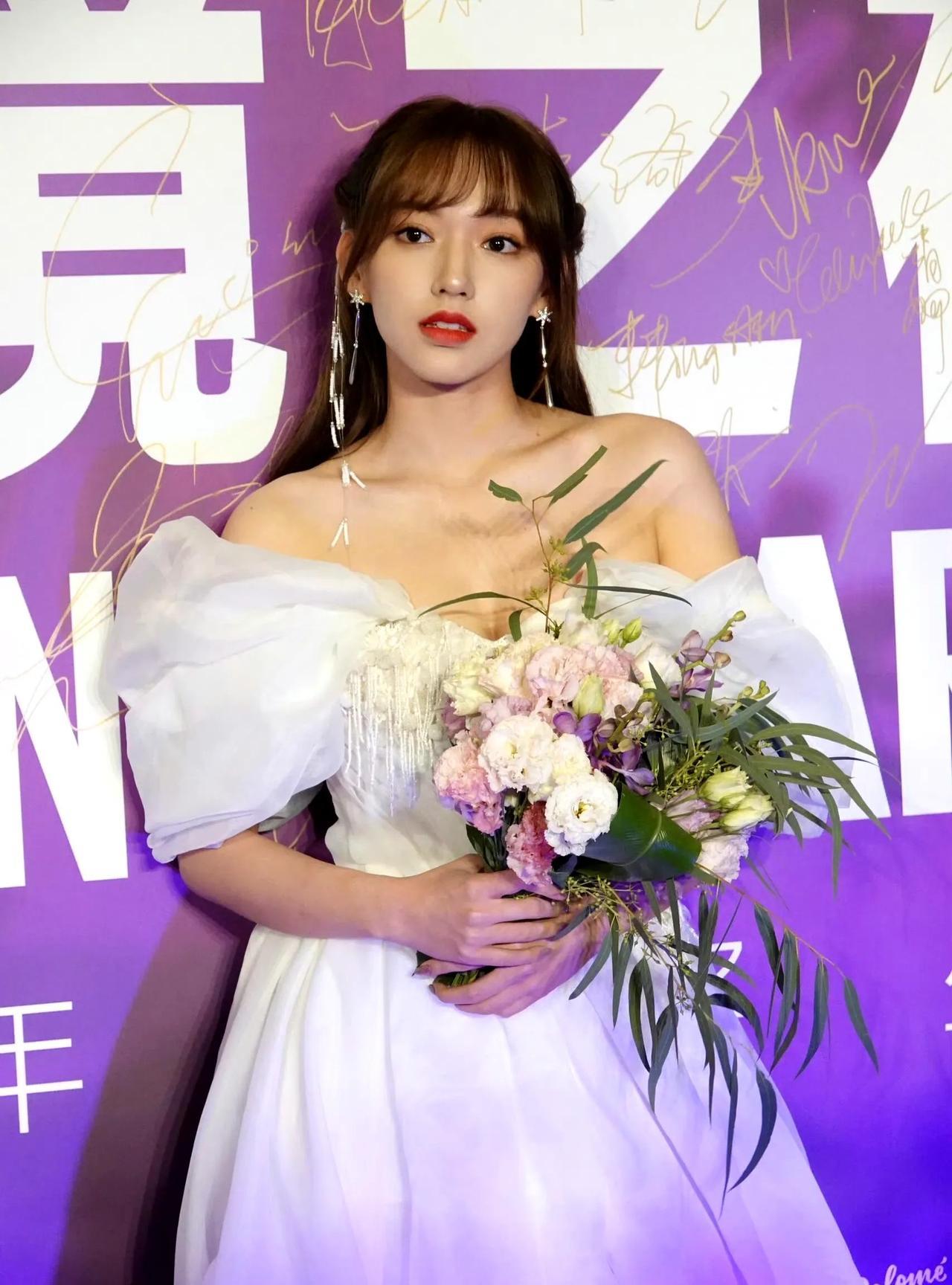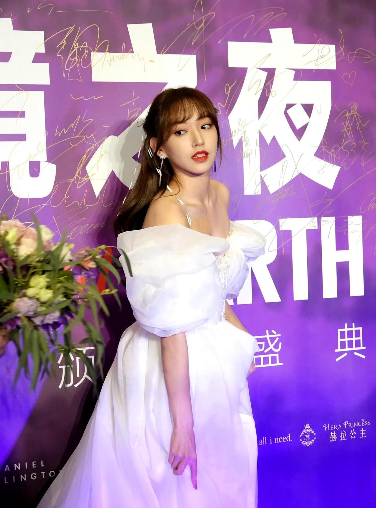 在流光溢彩间,程潇身着一袭梦幻白纱裙现身。一字肩设计露出精致锁骨,蓬松裙摆衬得身