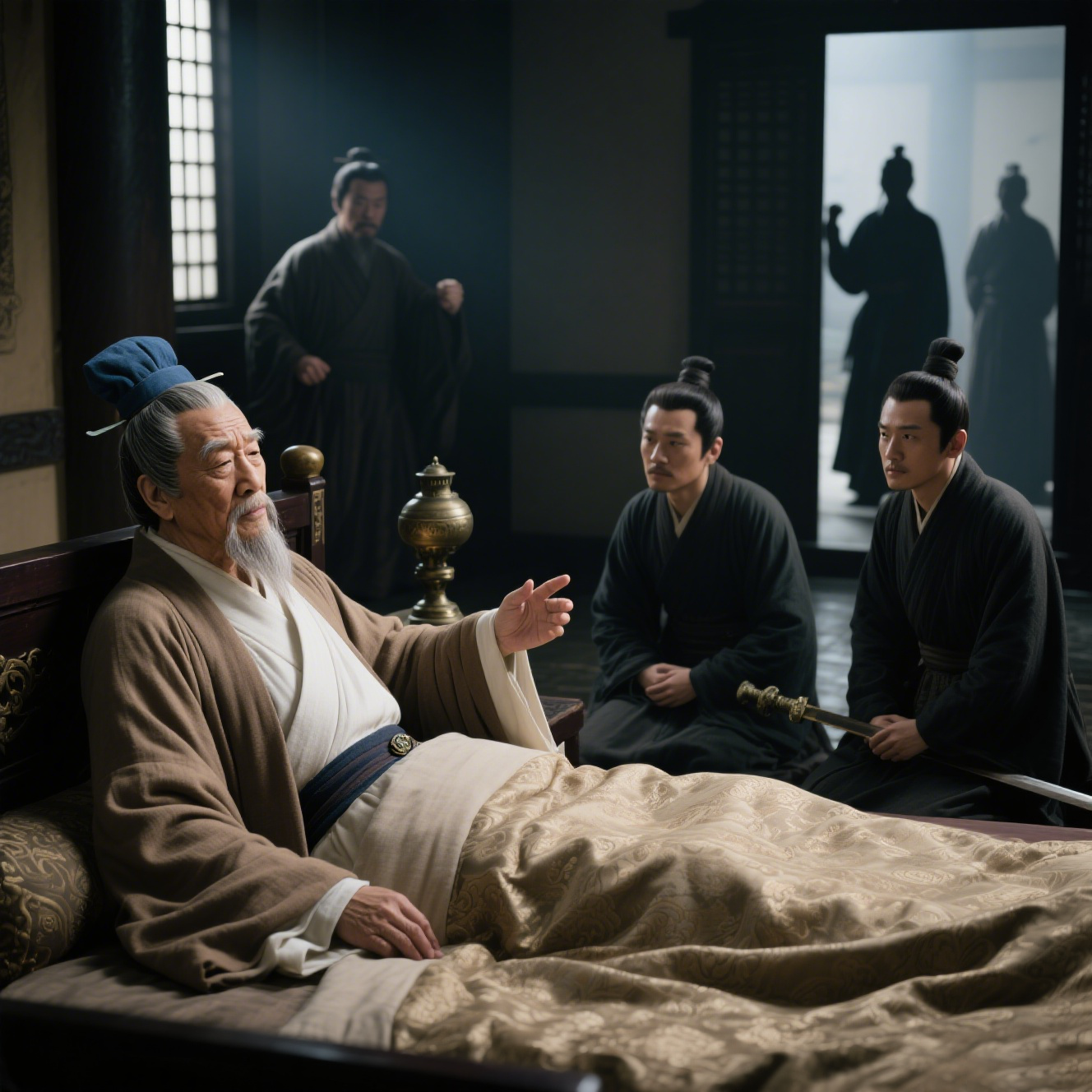 "师儿...昭儿..."他突然睁眼,浑浊的瞳孔里闪过厉光。司马师慌忙凑近,却被父亲一把攥住手腕——那力道大得惊人,全不像将死之人。