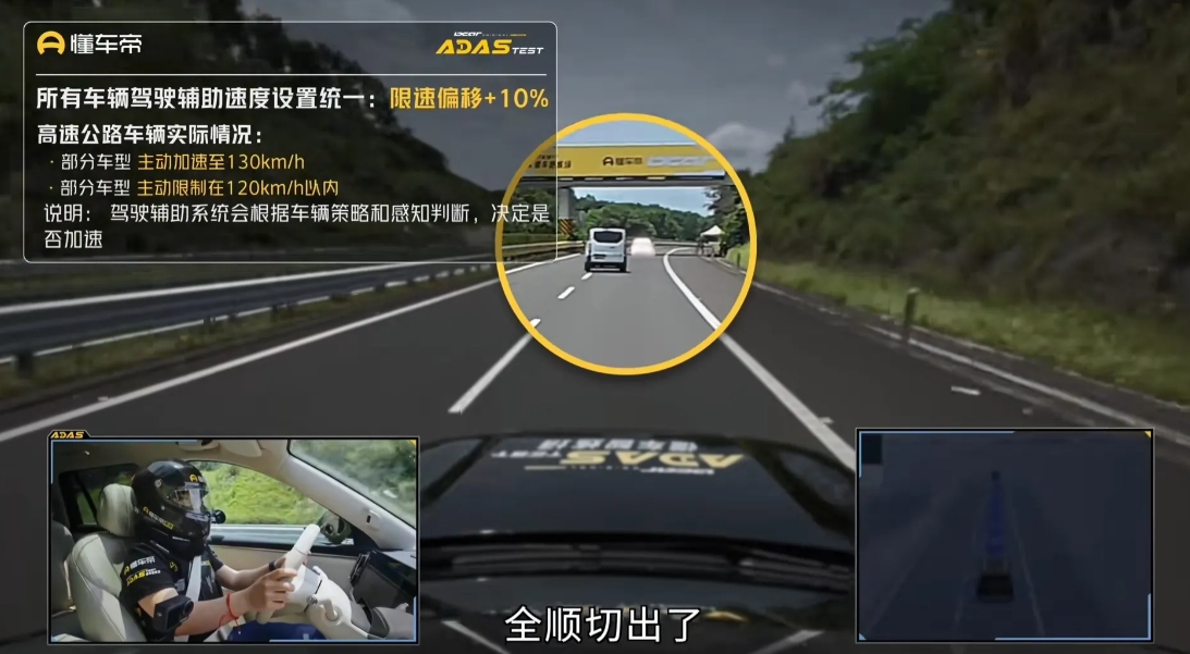 这测试是要围杀华为吗,前面两台车,系统判断可以超车,所以没有刹车,但司机强行拉回