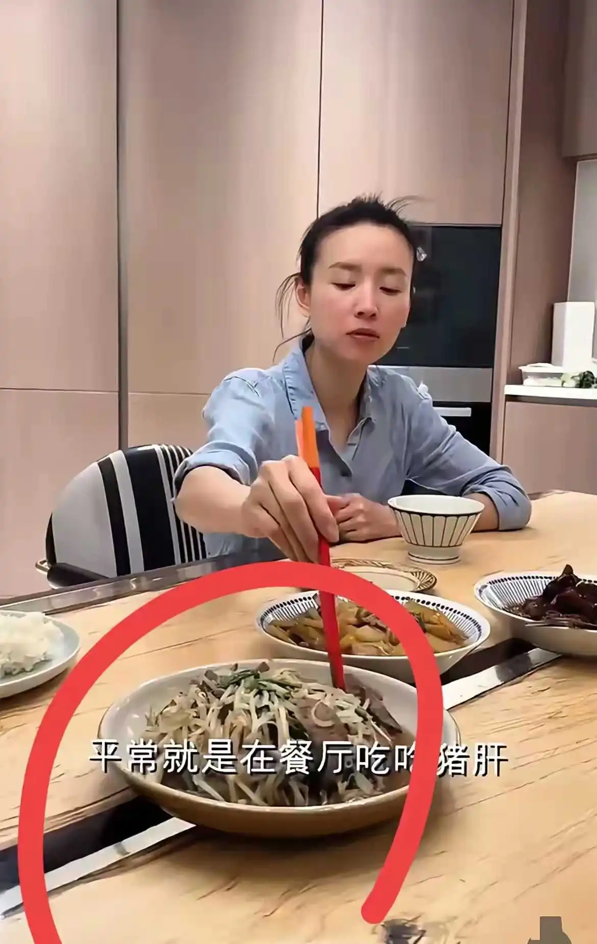 绿豆芽炒猪肝,没听说过,也没见过, 小编可能想反衬董洁强势吧,控制欲强, 这道菜大众没见过,能出现她俩餐桌上,说明董洁控制欲强,经常把自己的思想强加于别人