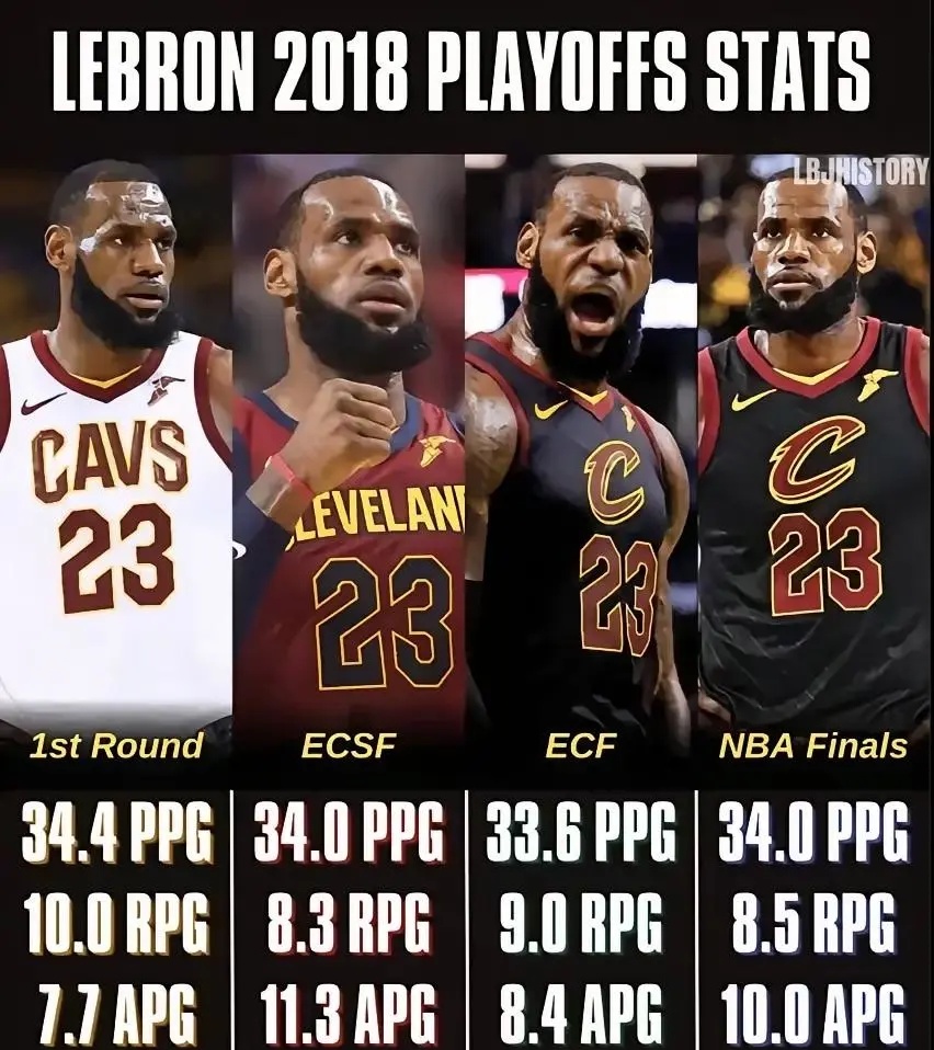 詹姆斯18年季后赛8次40+,除了乔丹,谁能企及18年季后赛的詹姆斯?我个人觉得