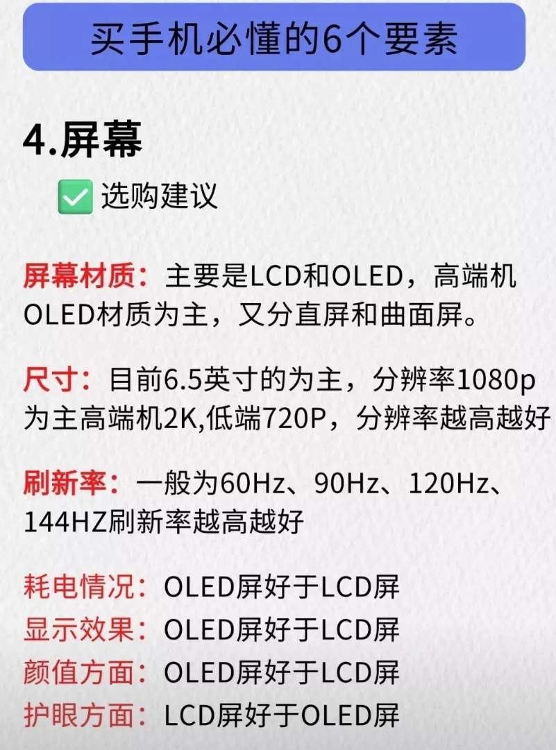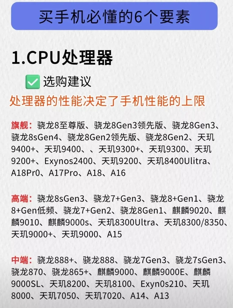买手机必看!6大要素直接封神,CPU、内存、续航、屏幕、相机、其他细节全拆解,从处理器性能到机身材质,从充电功率到影像传感器,手把手教你避坑选神机 。掌握这些,还怕买不到好手机?不收藏等啥呢!赶快看看吧