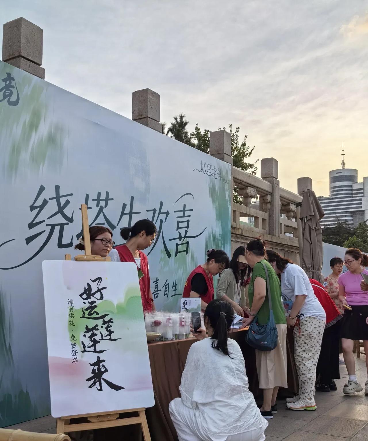 一个普通的日子,一个难忘的日子。天宁寺老城厢自在夜游季到啦! 有“绕塔生欢喜”活动,赶紧报名来参加。傍晚的天宁寺高塔前,人越来越多了! 已经报名的登记签名,没有报名的可以现场扫码报名,一起来“绕塔生欢喜”。 七点,通过工作人员引领,我们分成几大排,找到了高塔香炉前,由主持人宣布活动正式开始。 由寺院的师傅带领大家齐诵《吉祥经》全文,然后大家有序绕塔三周,最后又回到香炉前,跟着师傅高颂回向文,活动圆满礼成。 城里尘外,夏夜灯语。双塔清凉,万点禅心。 #分享城市新鲜事#