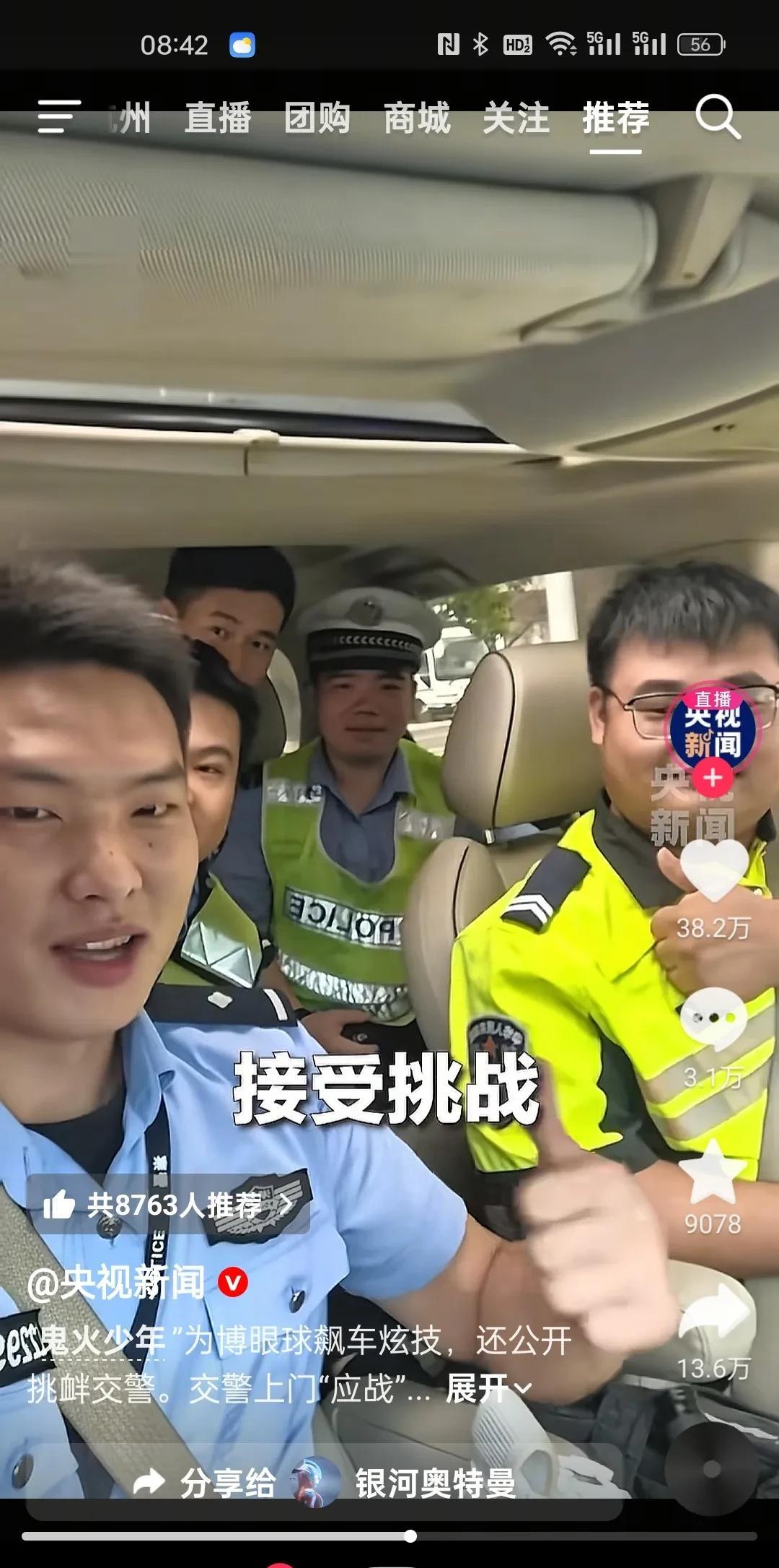 能让交警“赞叹”挑战成功的还真不容易,友谊鬼火少年,竟然发视频挑战大通湖交警,还