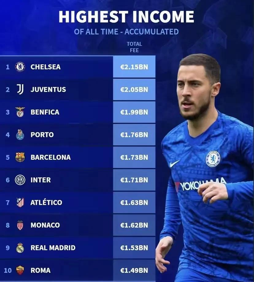 #欧洲足球# 的两张榜单能说明什么? 近期,著名的足球媒体——德转统计出了两个榜单,分别是足球历史上转会支出和投入排名前10的俱乐部。 #切尔西# 在这两个榜单上都处于霸榜的地位,其足球投入和支出分别以41.8亿和25.1亿位居榜首。排在前列的豪门还有曼城、尤文图斯、曼联、皇马、巴萨,#国米# 也在两个榜单中以26亿的支出和17.1亿的收入位居6 - 8名。 由于通货膨胀的原因,这实际上反映了21世纪通过买卖球员来强化球队的俱乐部排名。 众所周知,切尔西在2004年阿布入主之后,成为金元足球的代表,而曼城则体现了中东土豪们那无处安放的金钱在足球界的“野蛮”存在。