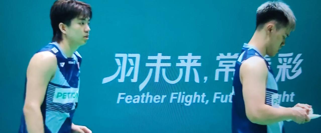 中国羽毛球公开赛男双比赛,马来西亚组合的内战,谢定峰/苏伟译(图1)两个21:16战胜了万炜聪/郑凯文,晋级四强。 第一局,谢定峰组合5:9开局落后,追到9平,13平过后,他们取得19:15领先,最终21:16逆转拿下第一局。 第二局,谢定峰组合8:5开局,一路顺风顺水,最终21:16再胜一局。