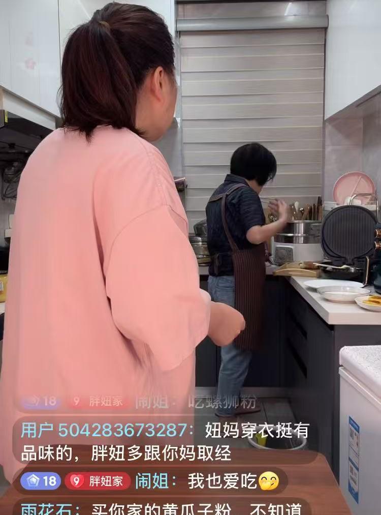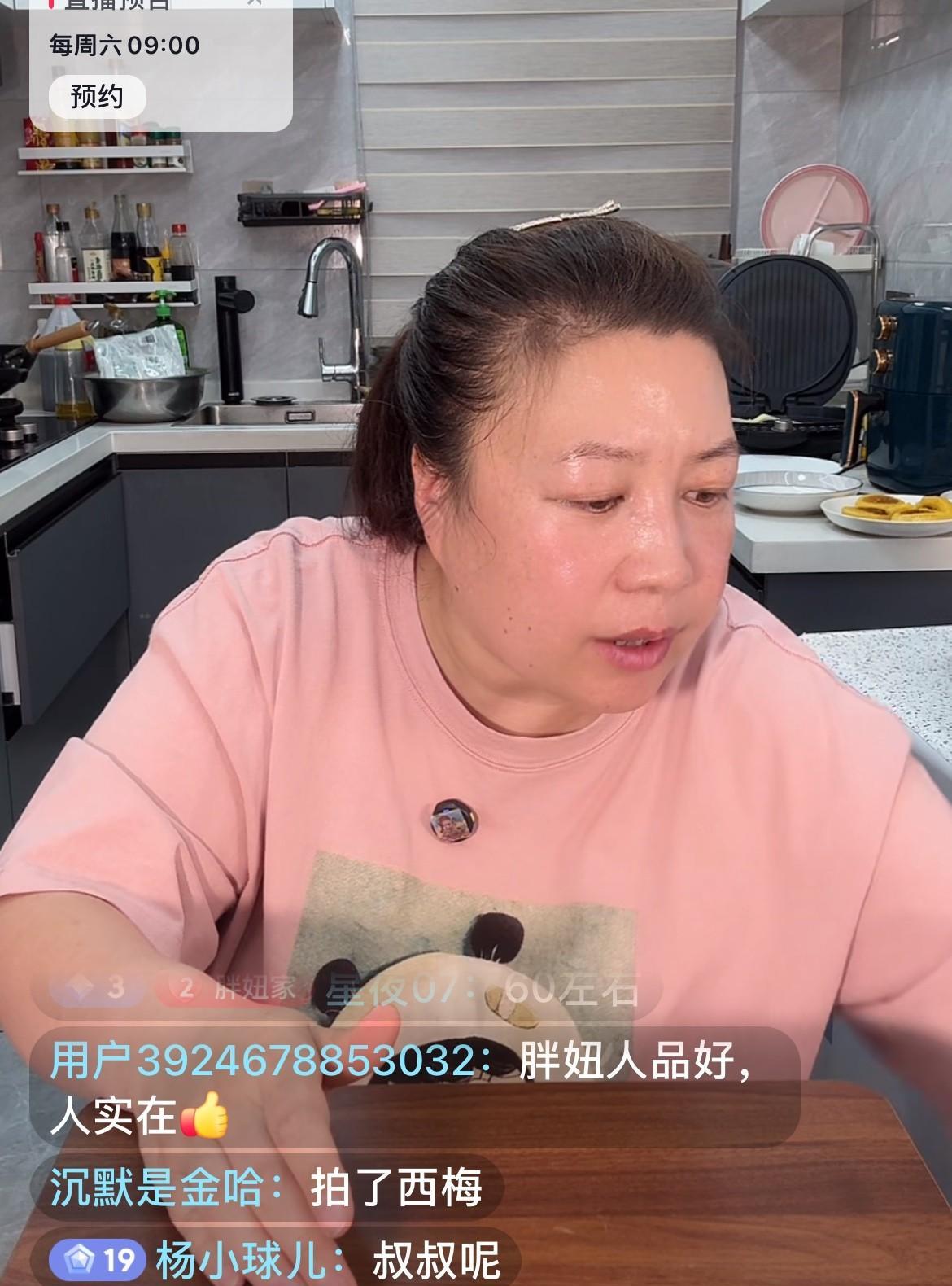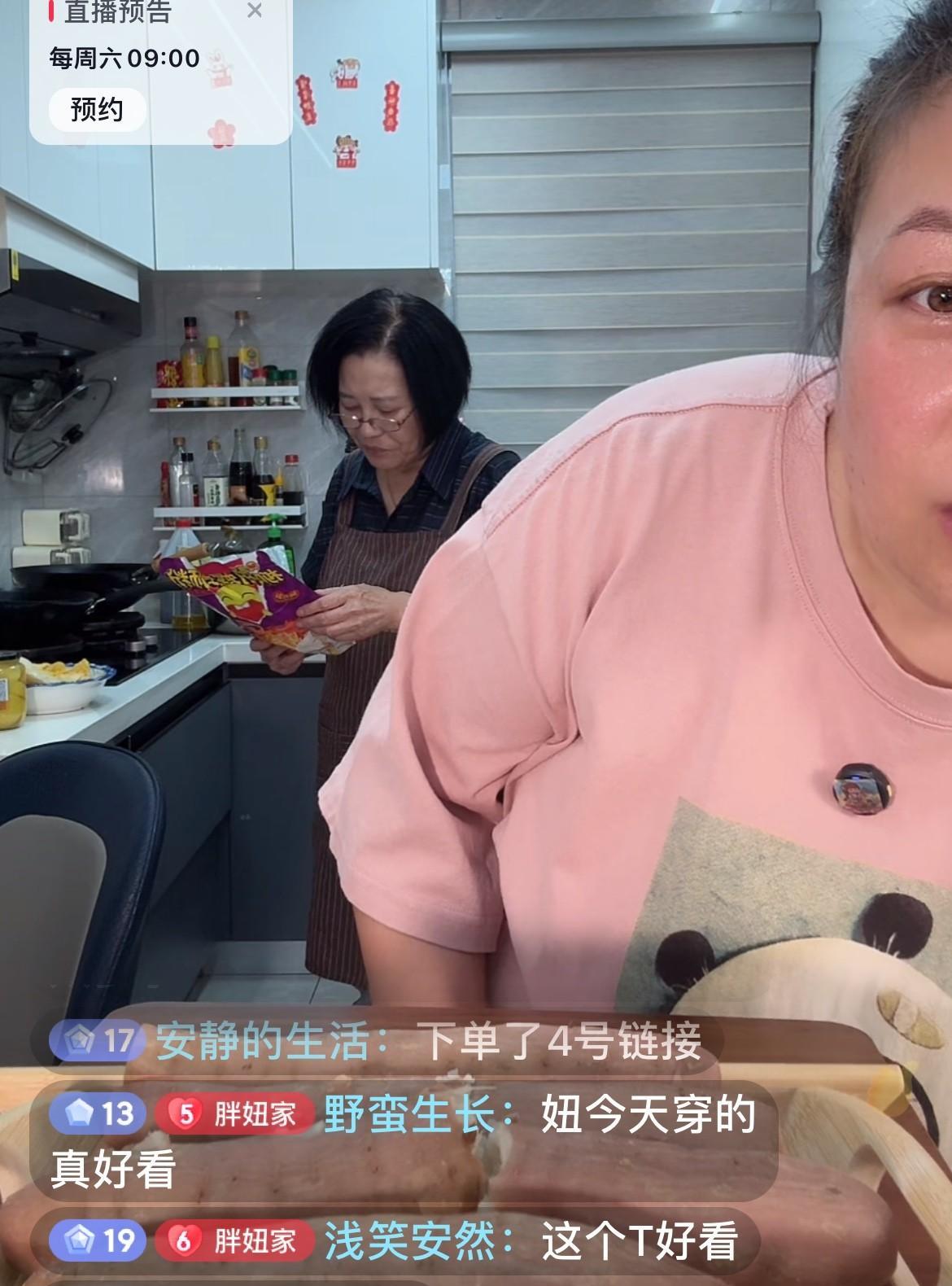 7月25日,胖妞出现在直播间,跟胖妞一起出镜的还有妈妈,爸爸也来了,胖妞说:货品