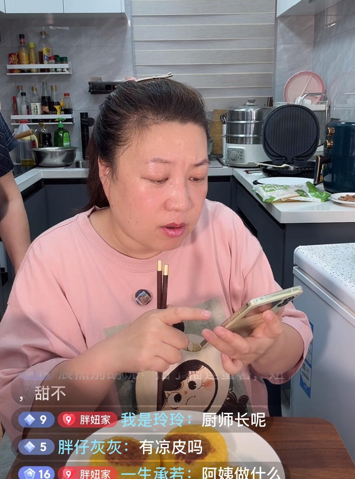 7月25日,胖妞出现在直播间,跟胖妞一起出镜的还有妈妈,爸爸也来了,胖妞说:货品不是很多的时候就和父母一起,货品多的时候就和哥哥嫂子一起! 直播间里有网友说胖妞皮肤真好!胖妞说:美颜的事!有网友说:你爸和你妈都不胖,你随谁啊?胖妞笑着说:我爸胖,我随我爸! 胖妞性格挺好的,说话也挺干脆的,再加上家里厨师长和总监配合着,带货带的不错,酸白菜和地瓜玉米的家家都喜欢吃! 胖妞笑着说:吃点地瓜配点螺蛳粉!不减肥,减肥也的吃饭!不吃饭,啥也干不了,你不挣钱了,你不生活了?说到这里胖妞笑了! 我觉得减肥太痛苦,还是别减了!