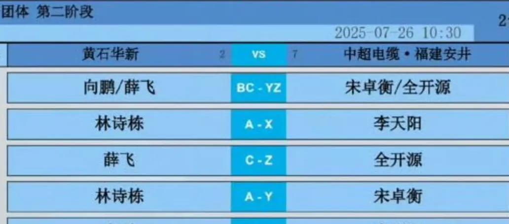 第一局林诗栋7-11李天阳! 第二局林诗栋13-11李天阳! 大比分1-1平! 小石头真的不怎么会打削球,小石头和向鹏之前都也输过削球手马特,小将们不论男女选手就是不怎么会打削球[捂脸]。 刚刚,宋卓衡/全开源3-2战胜向鹏/薛飞, 黄石基地0-1暂时落后于中超电缆! 这是2025乒超联赛第二阶段男子团体常规赛,评论区继续播报战况哦[笑哭]。