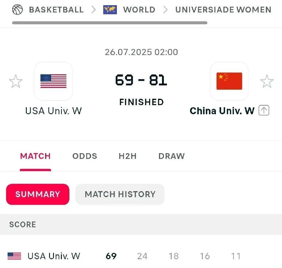中国大学生女篮大运会战绩全记录 小组赛: 7月16日,88:56胜葡萄牙 7月1
