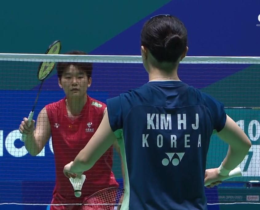 女双又提前锁定冠军!圣谭组合与凡贤组合会师决赛。 今天中国羽毛球公开赛第四场比赛是世界第一的圣坛组合刘圣书/谭宁,迎战韩国金慧贞/孔熙容,两对争夺女双上半区决赛席。 金慧贞/孔熙容,世界排名七。今年两次闯进决赛,两次夺走冠军,即印尼大师赛、马来西亚公开赛冠军。 两对只交手过一次,那是今年6月的印尼公开赛上,圣谭组合2:0获胜。 圣谭组合男子打法,力大球重。 首局11:7技术暂停,之后连得五分,将比分再拉大,21:轻松拿下。 次局1:5落后,六平后反超,战至技术间歇11:9。之后圣谭组合没再给对手机会,21:12锁定胜利。 这样,圣谭组合2:0横扫韩国组合,与先前挺进决赛的凡贤组合胜利会师女双决赛。
