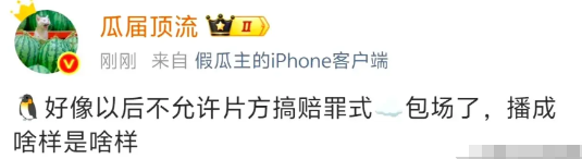 有业内人士爆料,鹅厂以后不允许片方搞赔罪式云包场了,播成啥样就是啥样了。