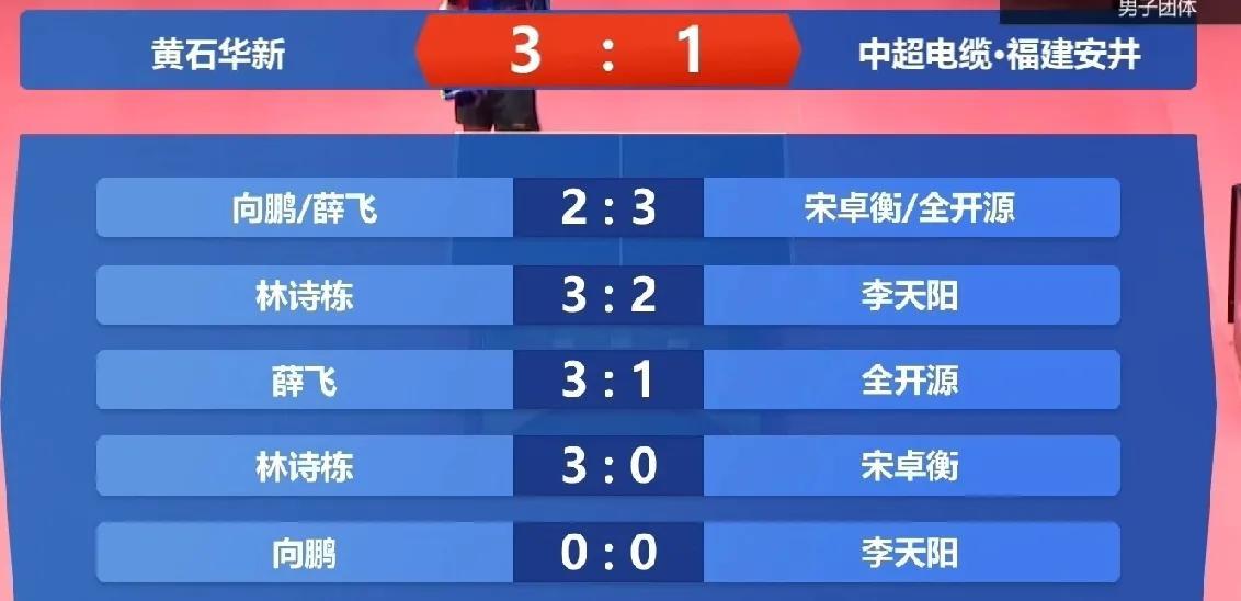 现在看林诗栋比赛会莫名的紧张,尽管今天还是两连胜,但第四盘看的心跳加速。 林诗栋前两局都是落后4分追平拿下,就发现内战真是不好打啊,宋卓衡长的又高又壮。 第一局林诗栋开局4-8落后,追到9-9比分一直很焦灼,最后14-12林诗栋艰难拿下。 第二局3-7落后又追到9-9,最后又是11-9拿下。 第三局林诗栋才掌控住局面, 比分一直都是领先没悬念赢了。 第四盘3-0林诗栋为华新扛下二分,黄石华新3-1赢了福建安井。 林诗栋乒超联赛渐入佳境,又看到了虎虎生威的小石头。 图片来自网络侵权可删。