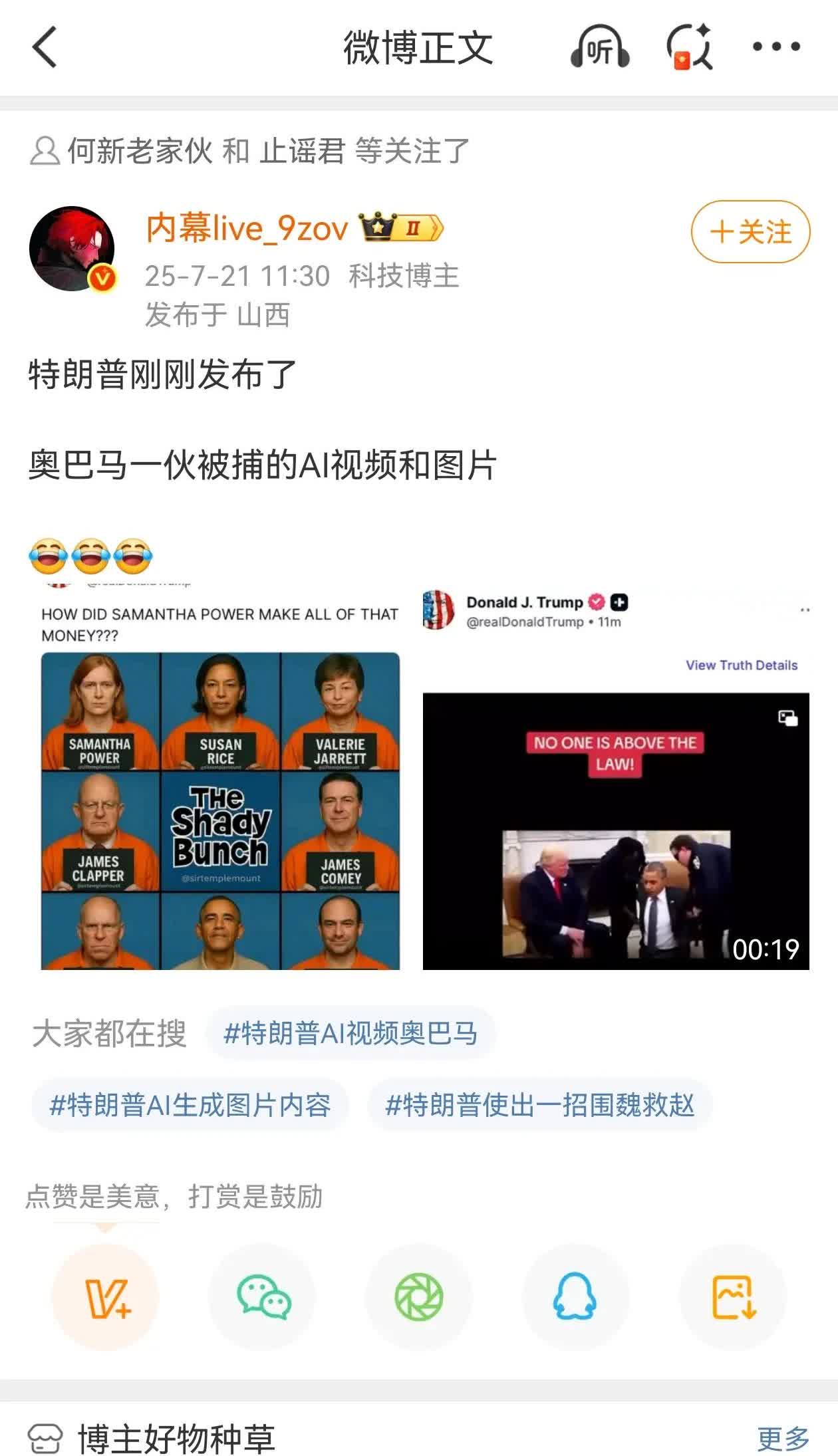 嗯,现在在大美利坚有两个短剧非常流行,一个是“税宗爱上在白宮当保洁的我”,大美利坚网友们一边骂一边付费追剧;一个是税宗自个爱看的,Ai短剧“奥观海通敌卖国集团覆灭记”。。。 嗯,大美利坚都抽象到这一步了,难怪老黄都要夸一声:大美利坚能有税宗,那叫国家优势。。。