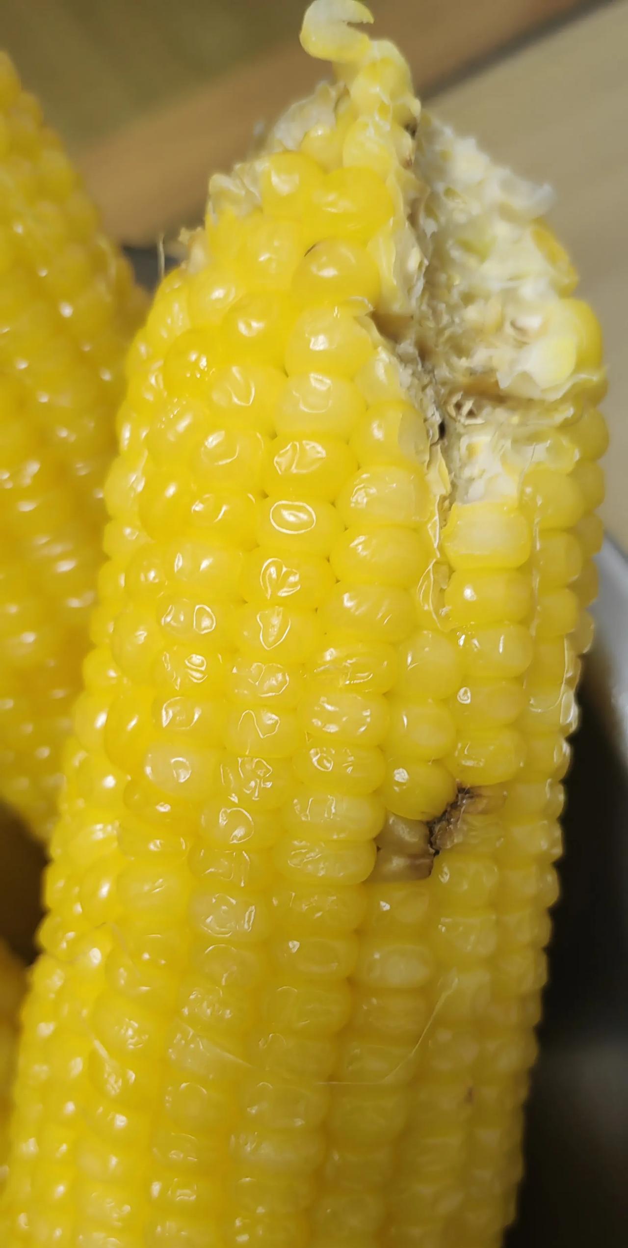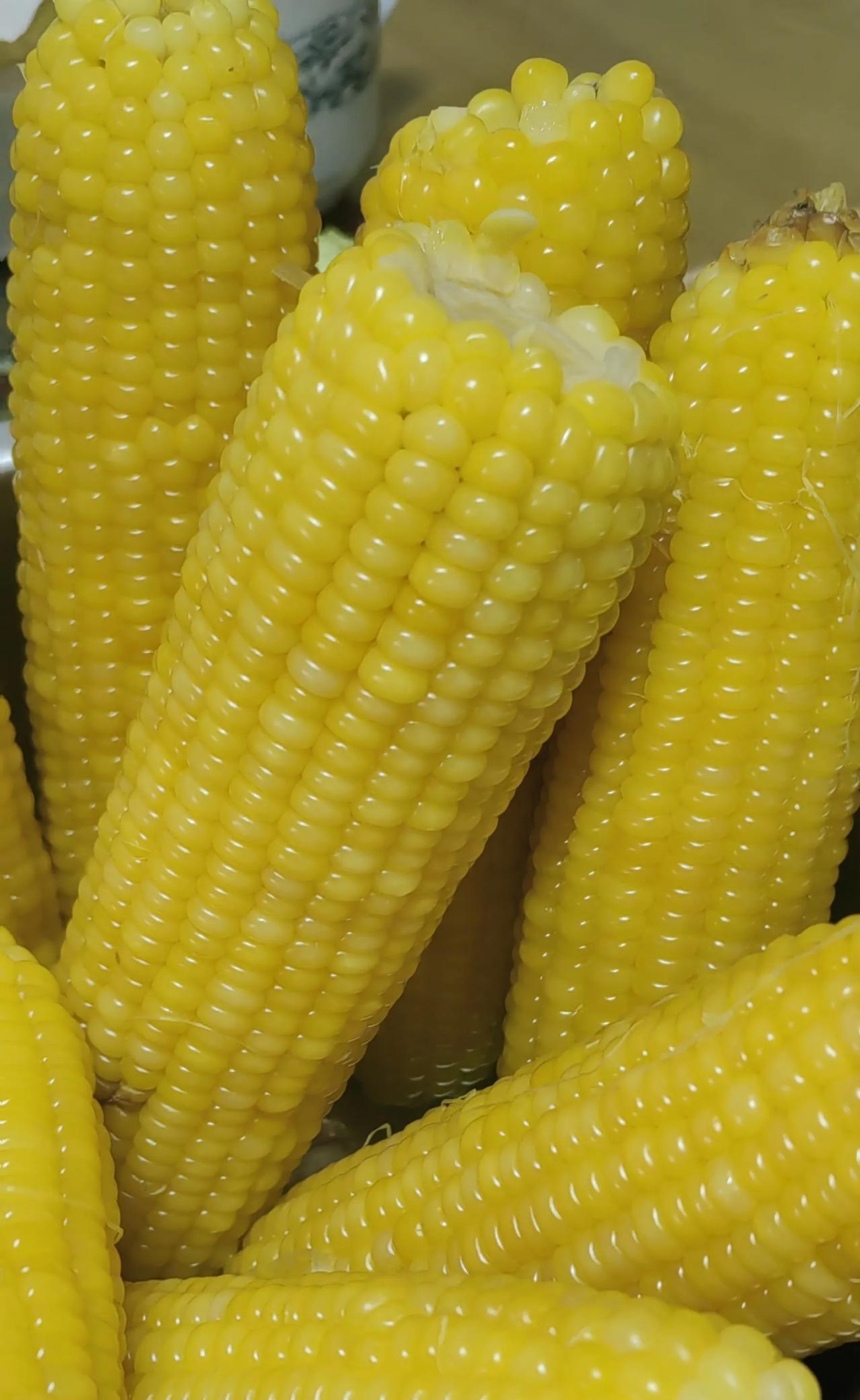 苞米好,虫子咬! 早饭后驾车驶上快速路,一口气38公里,拐入农村乡路。我看到了广袤的黑土地上满眼绿色——“田野又是青纱帐!” 应友之邀赴远郊,朋友夫妻俩迎候多时,刚刚坐定,一盆苞米煮熟了端上,香味扑鼻而来,急不可待尝一尝,太好吃了。 我喜欢吃苞米,尤其喜欢农民朋友家菜园子里面的,它不上化肥,不打农药。友告诉我,“辨认方法就看苞米尖端,虫子咬过的,喜鹊叼过的。” 我咬一口尝尝,果真皮薄、嫩软、黄澄澄,掰下来几个粒(图片三)珍珠一样亮色闪烁的,我又吃到了纯绿色的玉米!
