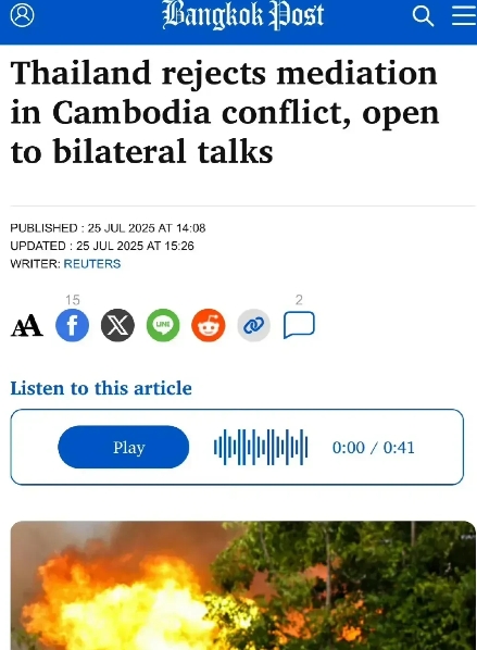 泰国的这一决定确实体现了其在当前冲突中的强硬立场。泰国外交部发言人明确表示拒绝任何第三方调解,意味着泰国决心通过直接对抗解决与柬埔寨之间的冲突,甚至是彻底了结两国之间的历史积怨。这种表态可能是为了确保自身的立场不受外部干扰,同时显示出一种不屈不挠的态度。 在目前的局势下,泰国在海陆空各个方面的军力和兵器优势显著,兵力资源也相对充足,这使得它在军事对抗中处于较为有利的位置。而柬埔寨则相对较弱,尤其是在面对泰国的军力时,可能感到压力倍增。柬埔寨在没有强大后援的情况下,恐怕也只能选择继续进行武力对抗,尽管这种行动一旦启动就意味着没有回头路,战局可能陷入更加激烈的升级。 这场冲突的走向将不仅仅依赖于两国的军事力量,还可能受到国际社会关注和干预的影响。如果局势进一步恶化,其他大国或国际组织的立场和反应也将成为重要因素,但泰国拒绝第三方调解的决定无疑给未来的冲突增添了更多的变数。